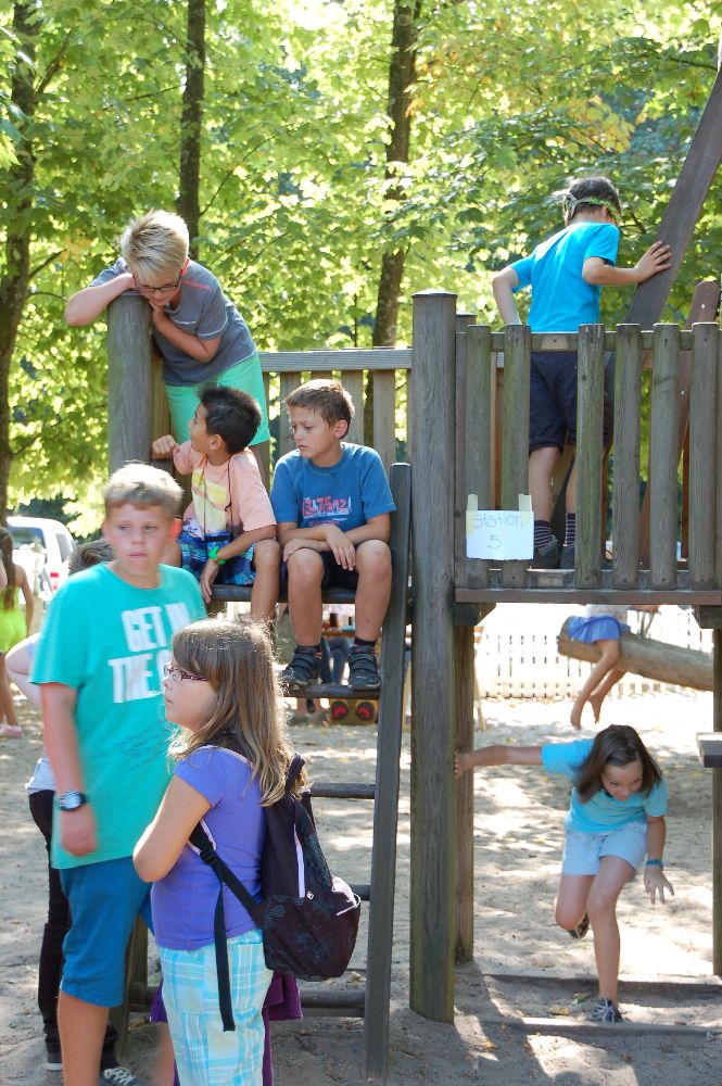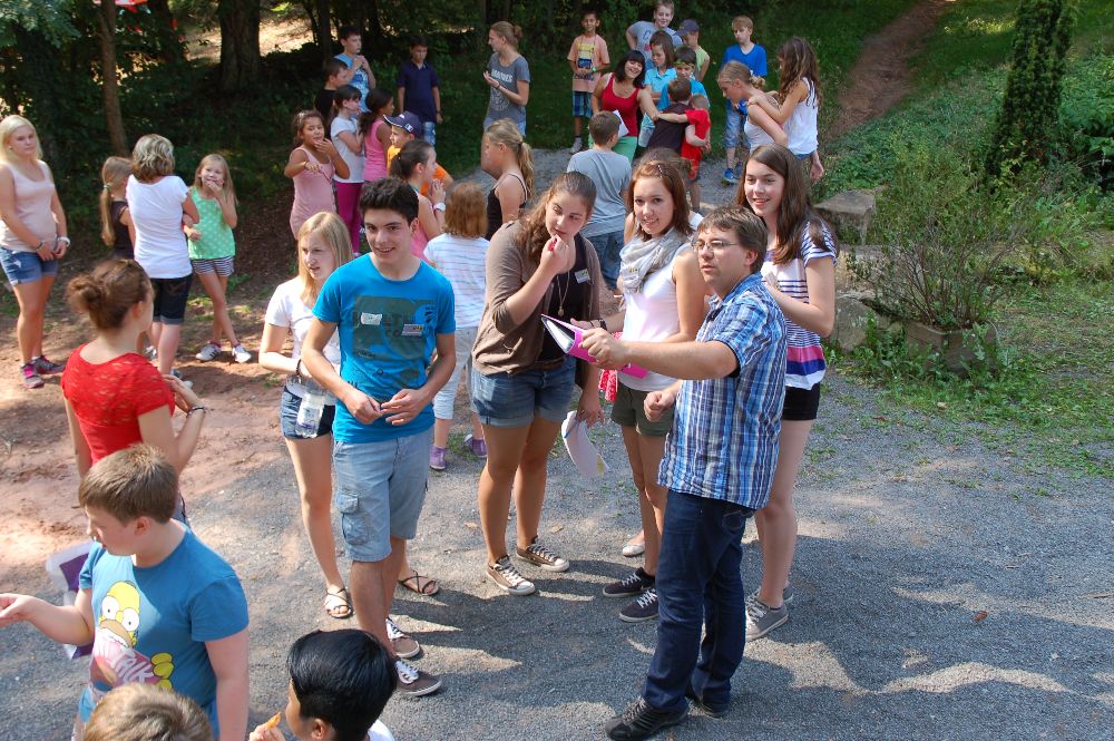 Bei sommerlichem Wetter trafen sich die Schülerinnen und Schüler der 5. am späten Vormittag am Leibniz. Von dort ging es mit den Klassenleiter(inne)n und den Klassenpaten auf die Wanderung zum Beckenhof, wo alle schon von Schülerinnen und Schülern der Schülervertretung (SV) erwartet wurden.