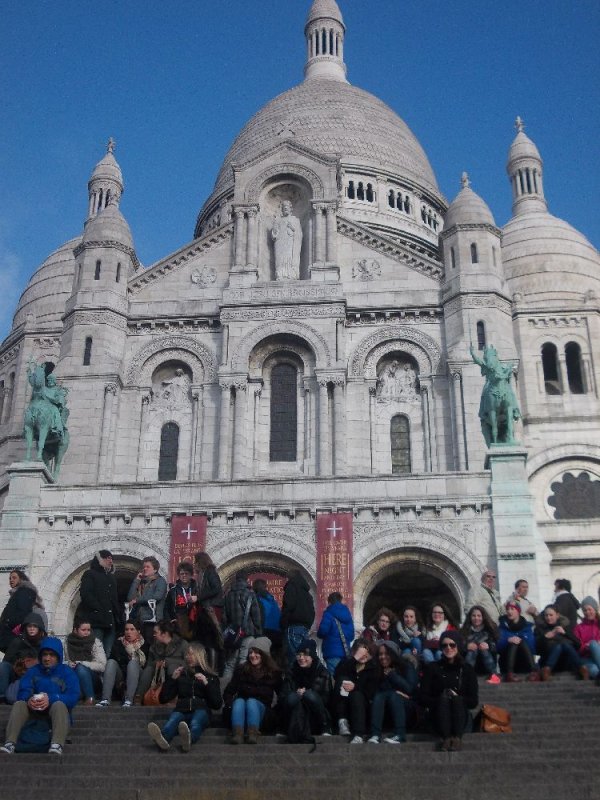 On Sunday we paid a visit to Montmarte, the quarter where all the artists lived. The weather was fantastic and we entered the church of Sacre Coeur where a mass was held at that time. We were able to buy souvenirs in the various tourist shops, too. Then we went into the city center where we saw the shop where Hemingway bought books in English and admired the church of Notre Dame de Paris. Afterwards we could choose what we would like to do on our own before we went home by bus in the afternoon.