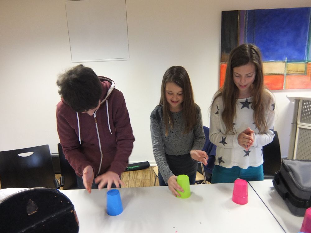 Wir drei Lehrer bedanken uns bei unserer Truppe für die harmonische und lustige Zeit, die wir hatten. Es war zwar auch mit Probenarbeit verbunden, aber der Spaß war immer da. Beeindruckt hat uns vor allem, dass Ihr wirklich zu einer Gruppe geworden seid und jeder gerne aufgenommen wird, egal in welcher Klassenstufe er/sie ist.