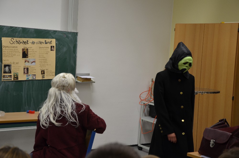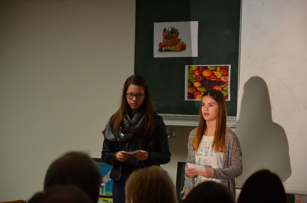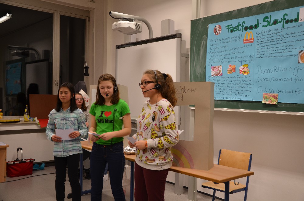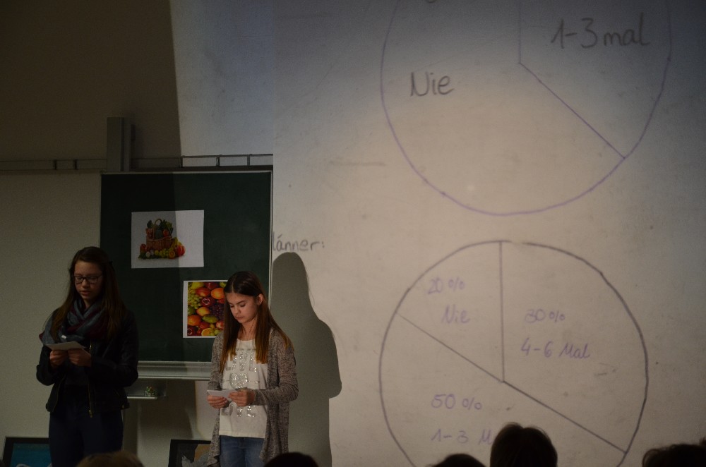 Der Präsentationsabend bildete den Abschluss der vorangegangenen Themenwoche unter dem Motto „Gesundheit". In dieser Woche erarbeiteten die Schüler Informationen über Ernährung in der Antike, über Folgen von einseitiger Ernährung oder über den Wandel des Schönheitsideals im Laufe der Kulturgeschichte. Sie übten sich in Formen des gesunden Kochens oder recherchierten die Lärmbelastung eines Schülertages. Für Präsentationen in englischer Sprache recherchierten die Schüler die jeweiligen Fachvokabeln.