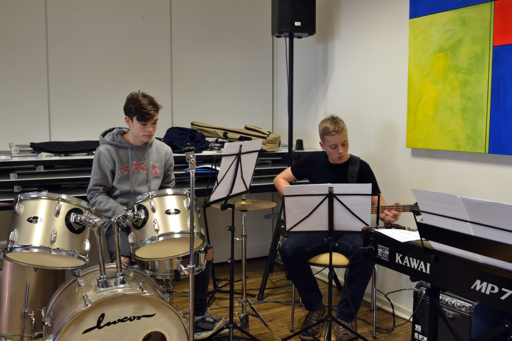 Schülerinnen und Schüler aus den Jahrgangsstufen 5 bis 12 nutzten die Zeit, um ein ansprechendes Programm für den Musikabend einzustudieren. Neben den Proben, die von Frau Knörzer, Herrn Lutz und Frau Vehling geleitet wurden, gab es auch noch genügend Zeit für Spieleabende (herzlichen Dank an den unermüdlichen Spielleiter Herrn Lutz!) und einen Ausflug ins Café.