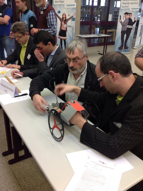 Die Fahrzeugkonstrukteure Leon Müller, Moritz Preiß, Patrick Kern, Philipp Reiser und Jonas Peifer aus der Klasse 10c landeten mit ihrem Fahrzeug im oberen Mittelfeld. Eine bessere Platzierung war ihnen leider an diesem Tag verwehrt, da einmal das Fahrzeug in voller Fahrt die 1,50m breite Fahrstrecke verließ und es bei der zweiten Fahrt nach einer kurzen Strecke unergründet stehen blieb. Die Enttäuschung wurde jedoch bei der Siegerehrung wieder verändert, als das Team den Designpreis für das bestaussehende Mausefallenauto überreicht bekam. Das Team „Alapha" wurde während den zwei Monaten des Erbauens von ihrer Physiklehrerin Frau Dury unterstützt.