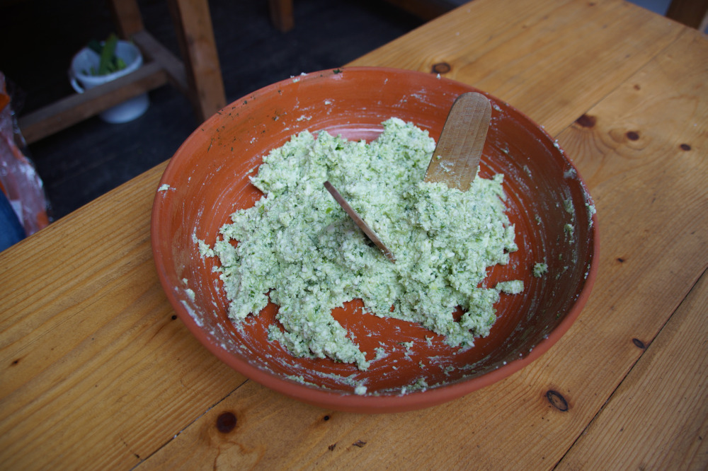 Besonders viele Anhänger fand das Moretum, ein mit viel frischen Kräutern im Mörser angemachter Käse, der sich bestens mit dem in der Pfanne ausgebratenen Soldatenbrot verband. Als alle gesättigt waren, waren auch die selbst hergestellten Mosaikplatten transportfähig getrocknet, und es konnte im Bus wieder nach Hause gehen.