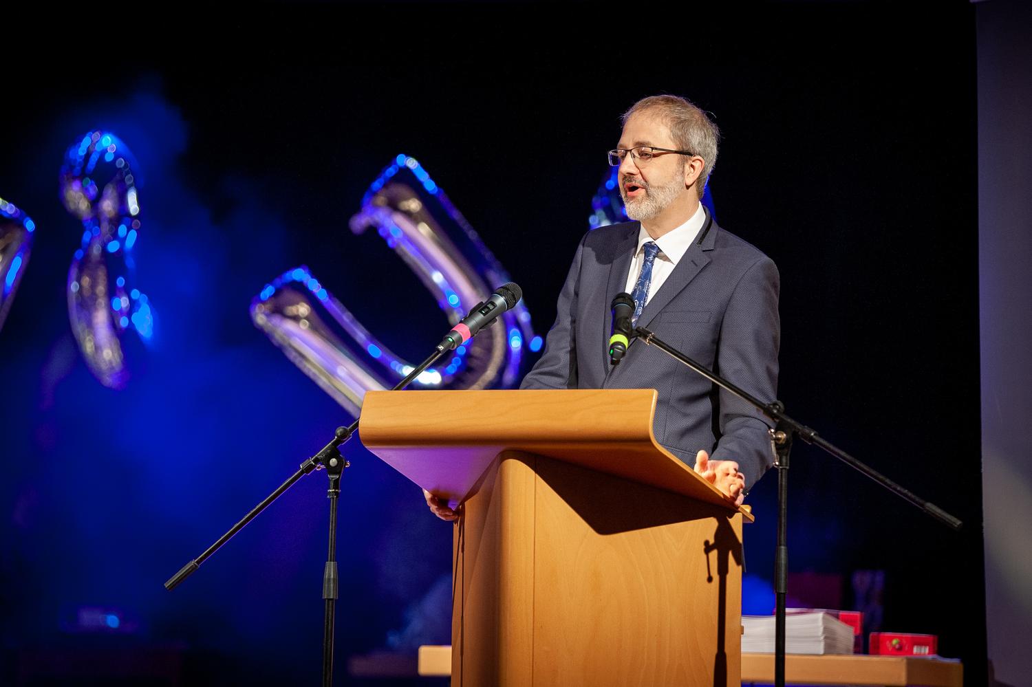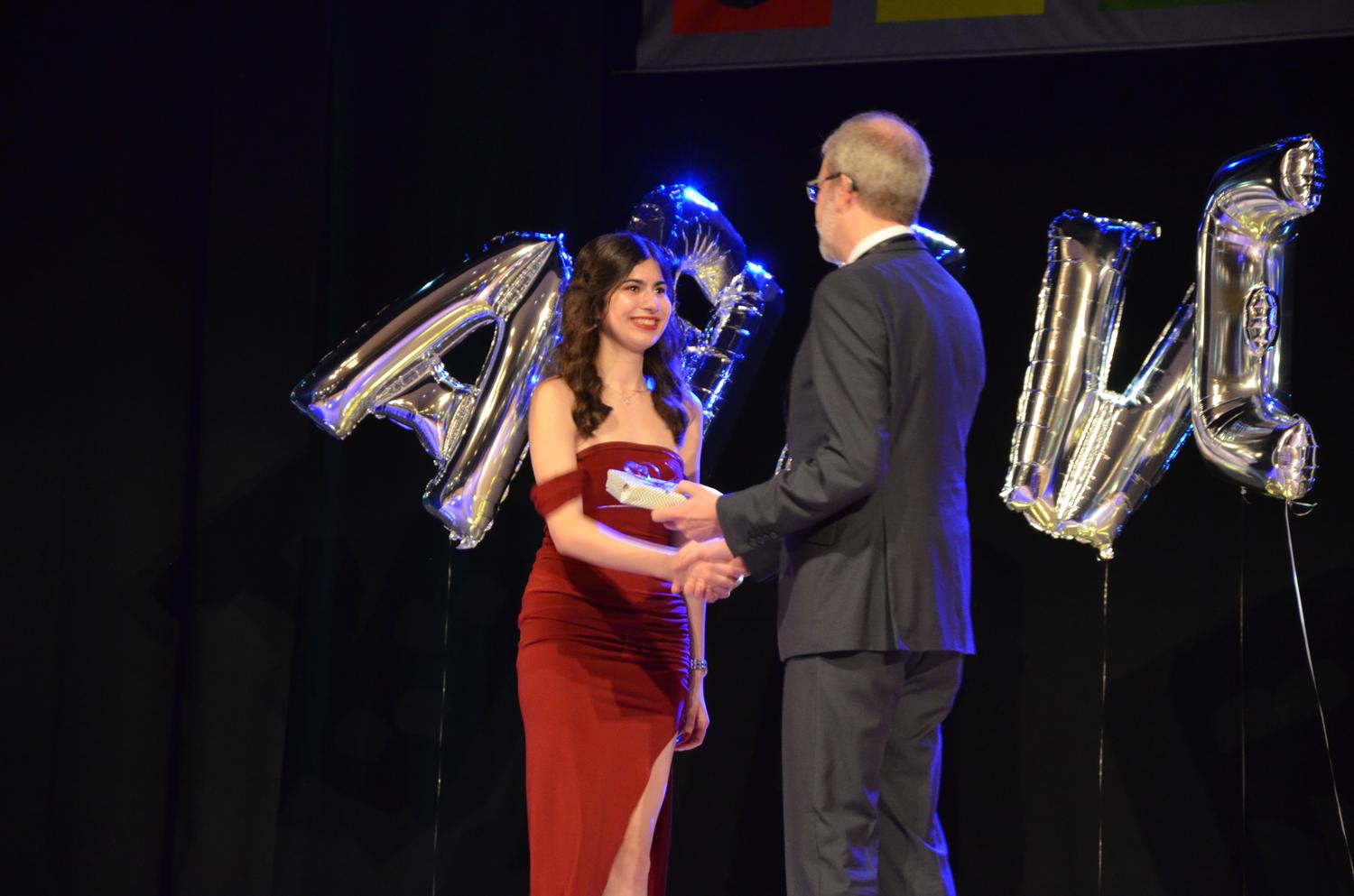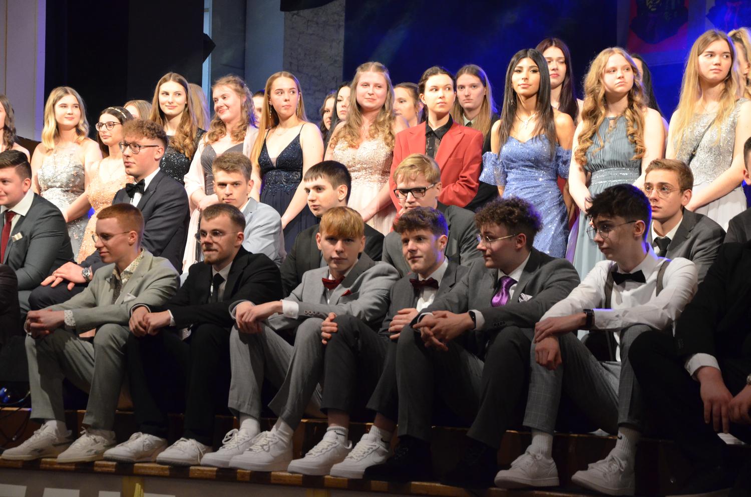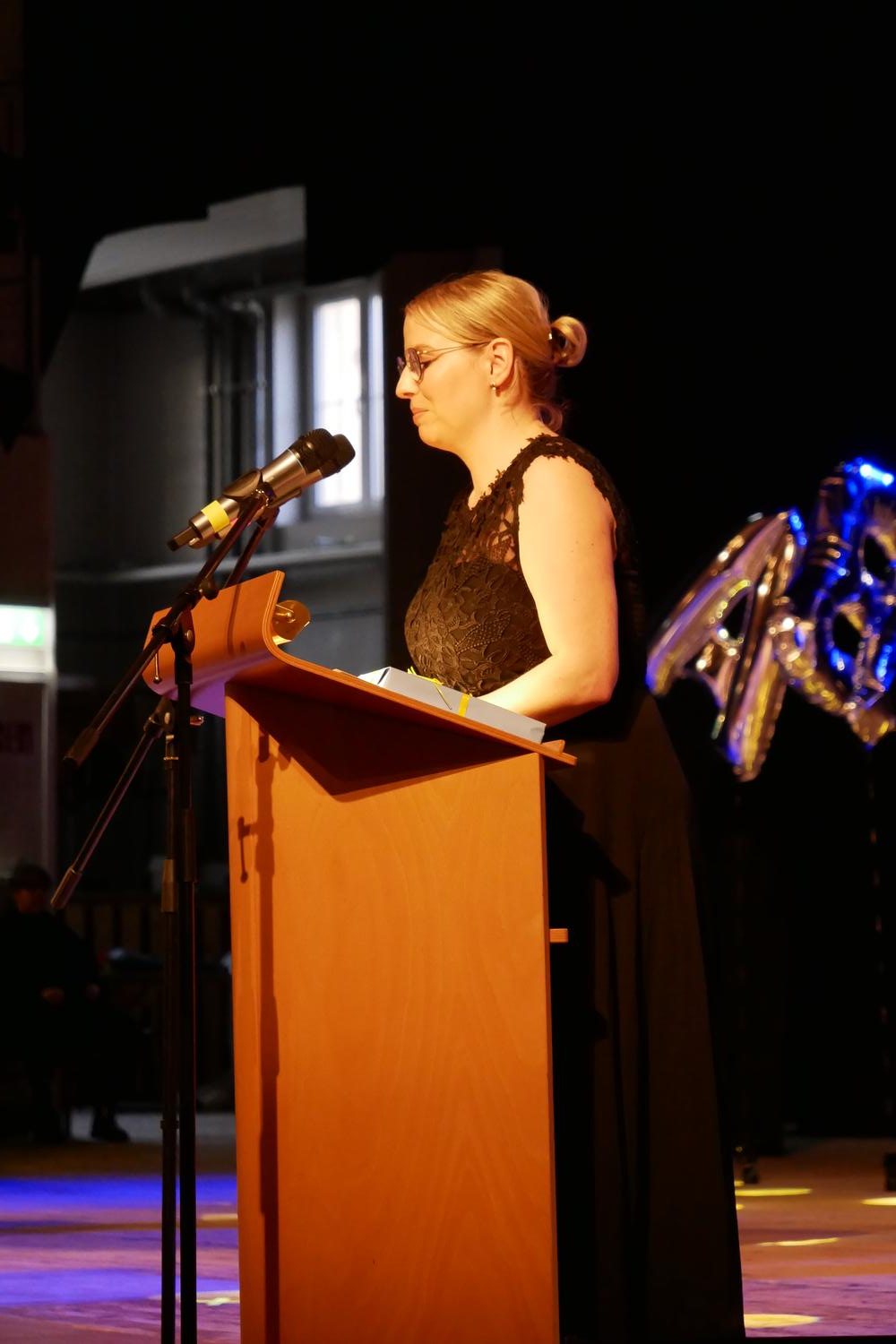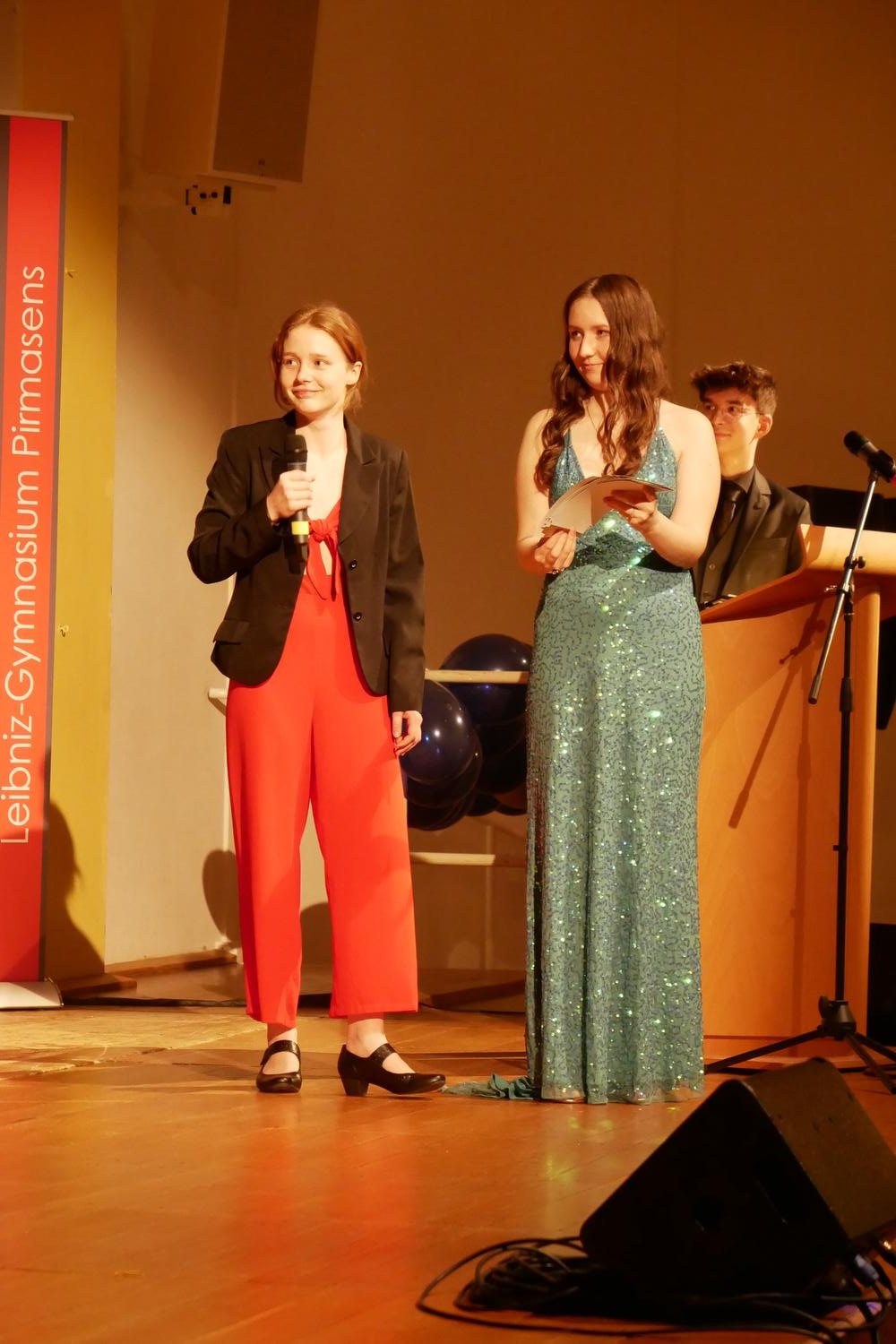 Eröffnet wurde der Abend durch Akim Adam und Leandra Weiß, gefolgt von der Rede des Schulleiters Herrn Mohr. Die ersten Worte waren jedoch nicht seine eigenen, sondern die, des auf KI basierenden Chatprogramms „Chat GPT". Dessen Aufgabe war es, eine Rede zum Thema „Abiball" mit dem Einbezug eines Zitats von Leibniz zu erstellen. Auf den ersten Blick schien dies auch gut funktioniert zu haben, doch bei genauerer Betrachtung erkannte man die Schwächen eines solchen Programms. Zu unpersönlich, sehr allgemein formuliert und auch mit einem Zitat, welches bei exakter Recherche nicht von Leibniz selbst stammte. So fand Herr Mohr im Anschluss die persönlicheren Worte an den Abiturjahrgang und erinnerte auch daran, kritisches Denken und das Hinterfragen von Sachverhalten zu wahren und betonte, dass es auch in den Händen der Absolventinnen und Absolventen liegt, ihren Teil beizutragen, sodass künstliche Intelligenzen unser Leben bereichern können. Denn, KI hat bereits an vielen Stellen ihren Einzug in unseren Alltag erhalten und kann nach Stephen Hawking, so Herr Mohr, entweder „das Beste oder das Schlimmste sein, was der Menschheit passieren kann".