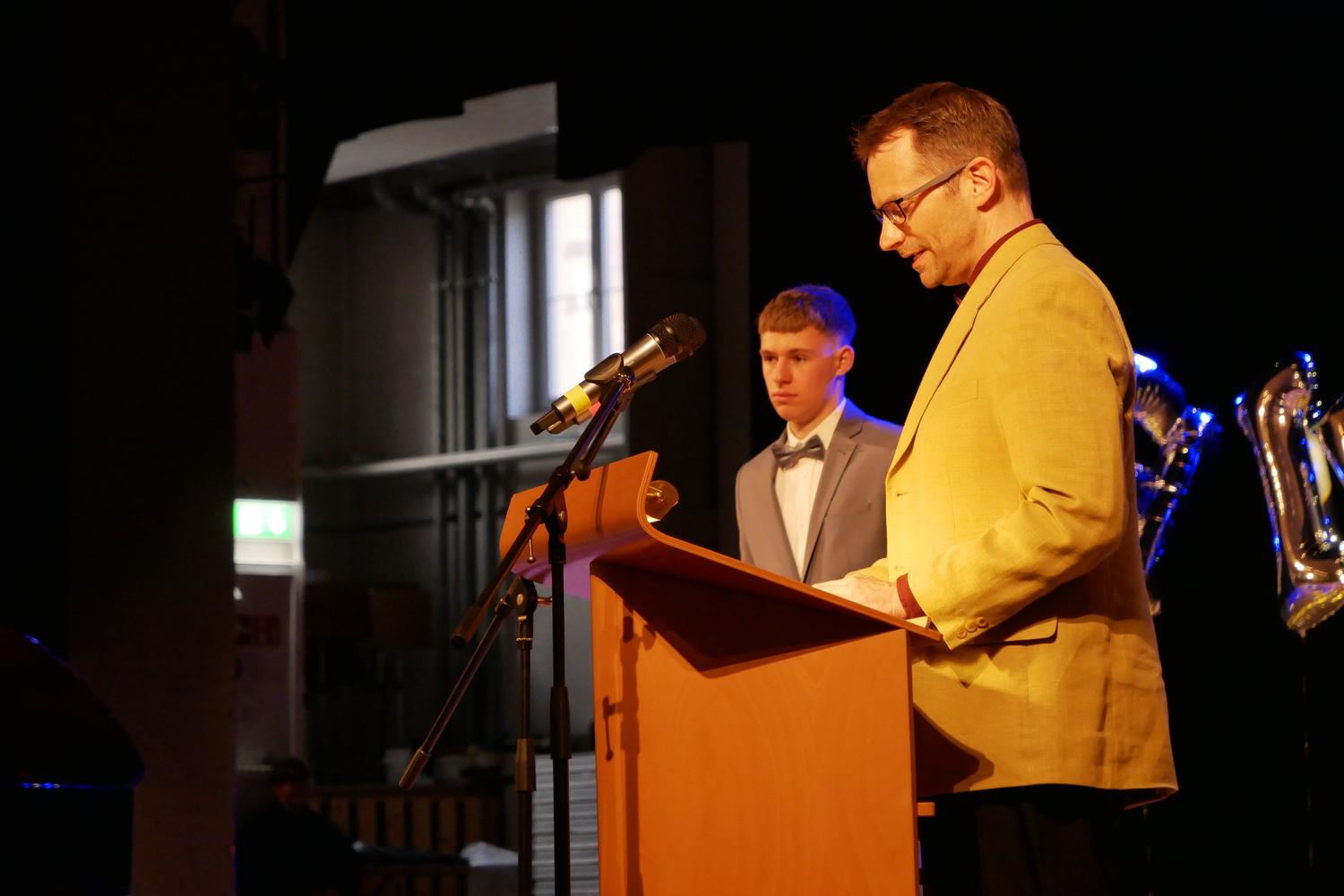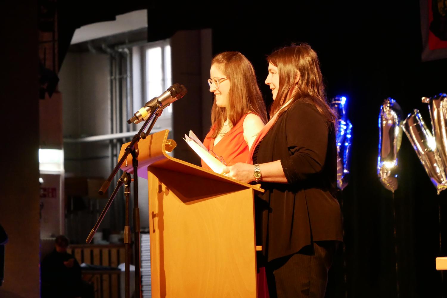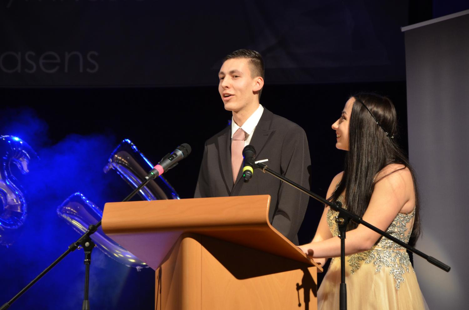 Seitens der Abiturientinnen und Abiturienten übernahmen Selina Lauer und Florian Schilling die Bühne, um ebenfalls ein paar Worte an die Anwesenden zu richten. Mit viel Humor ließ man die Schulzeit Revue passieren, erzählte von Klassen- und Studienfahrten, von für das Leben gelernten Dingen, aber auch der ein oder anderen mathematischen Gleichung, welche man wohl eher nicht mehr brauchen wird, sowie dem immer weiteren Zusammenwachsen der Stufe als Gemeinschaft. Ganz so „Lost in Space", wie es im Abimotto steht, scheint es wohl doch nicht zu sein. Aber auch wie ihr Vorredner hoben sie nochmals ihre Aufgabe auf ihrem neuen Lebensweg, die Welt mitzugestalten, hervor.