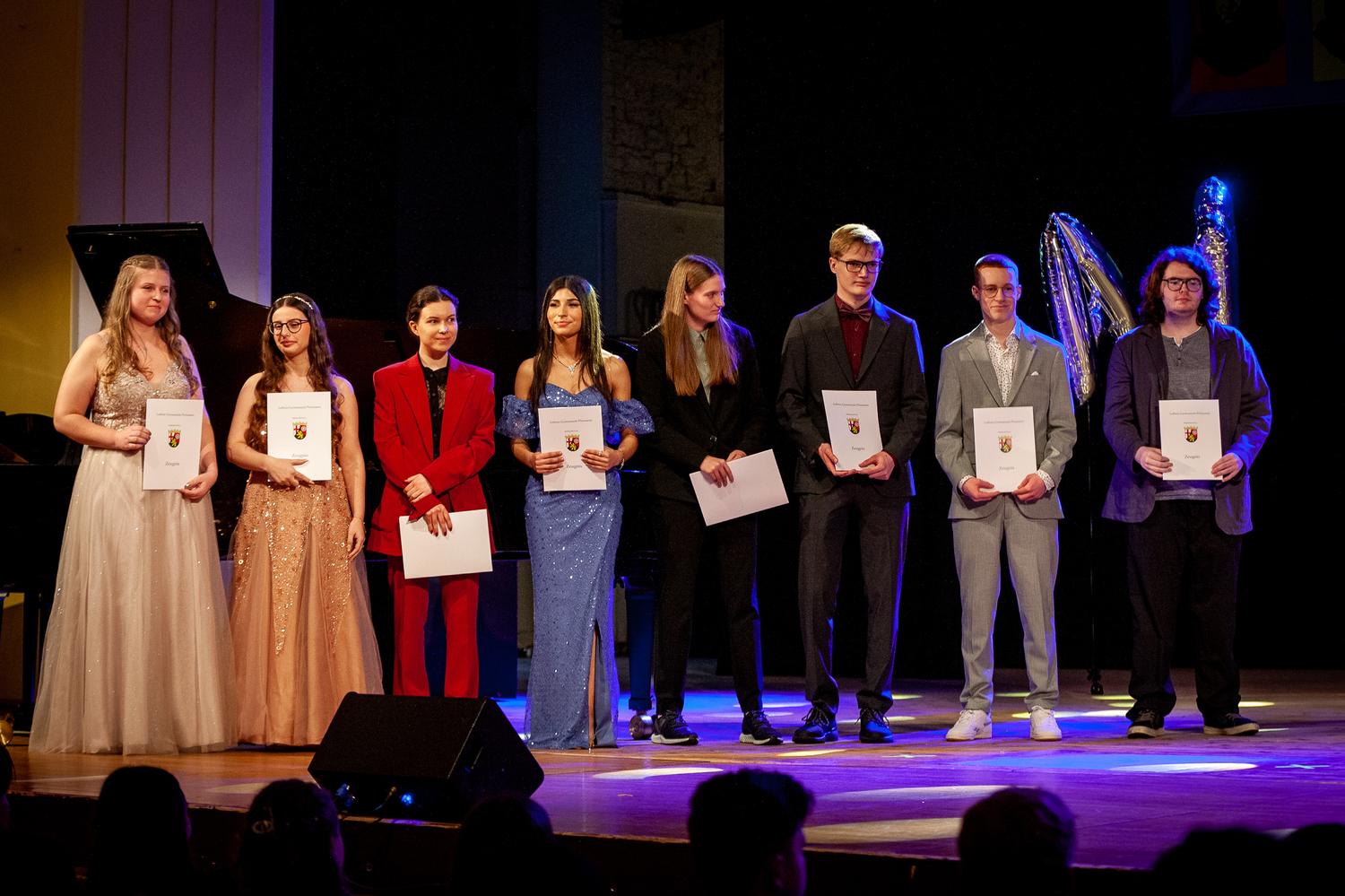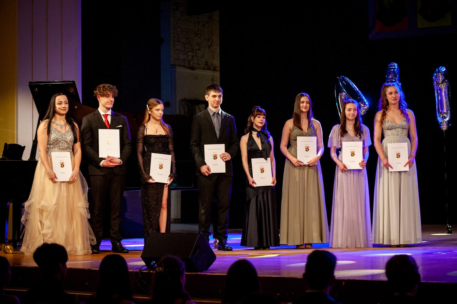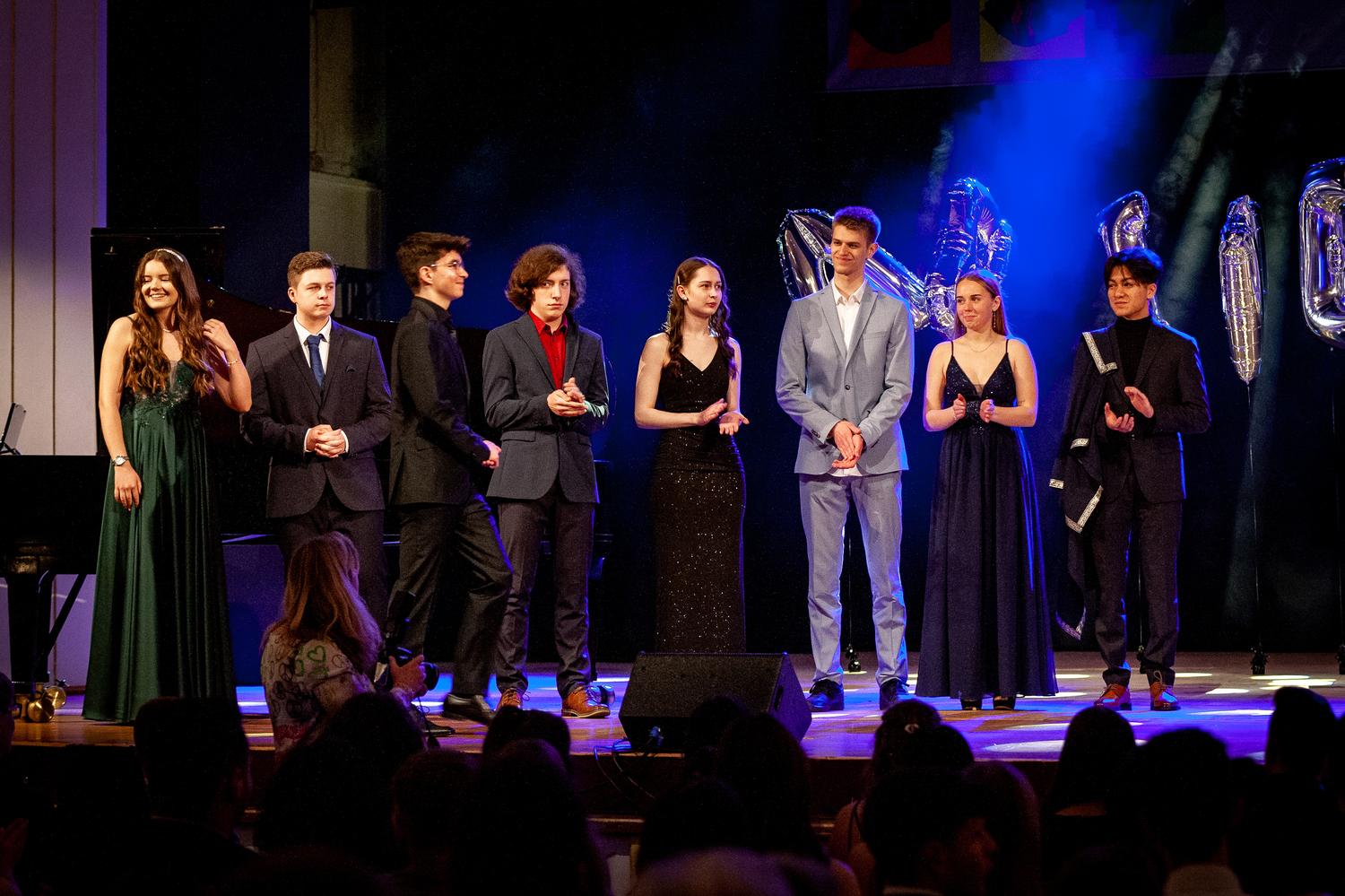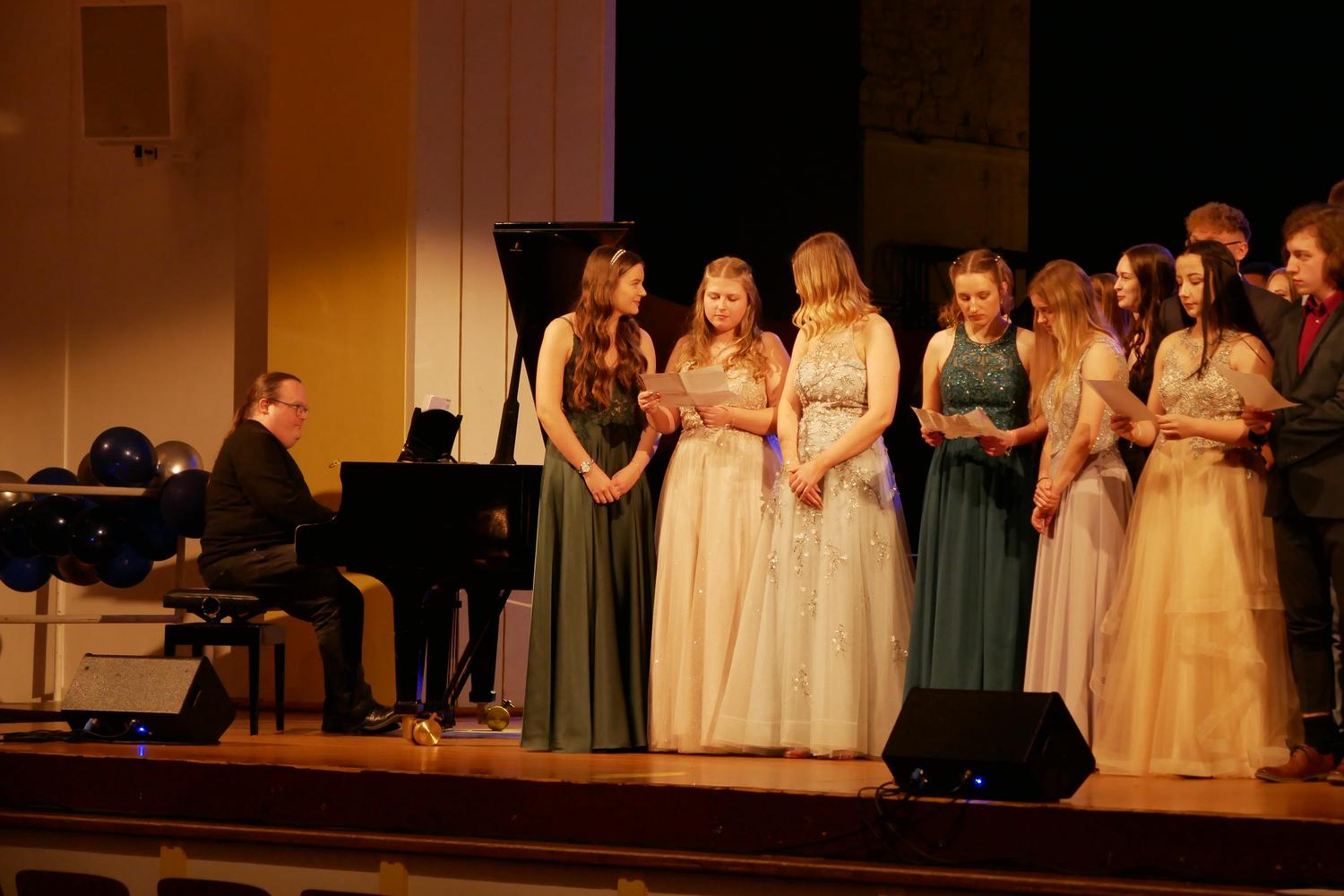 Musikalisch aufgelockert und begleitet wurde der Abend durch Lukas Becker am Klavier sowie durch eine Gesangseinlage des gesamten Jahrgangs am Ende des „offiziellen Teils".