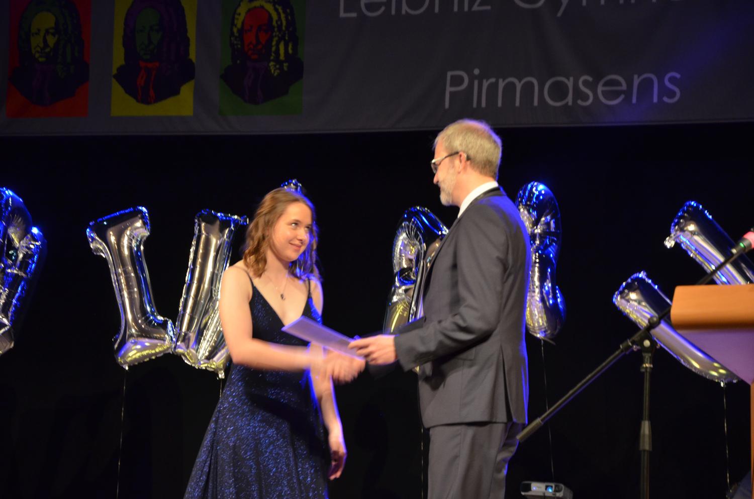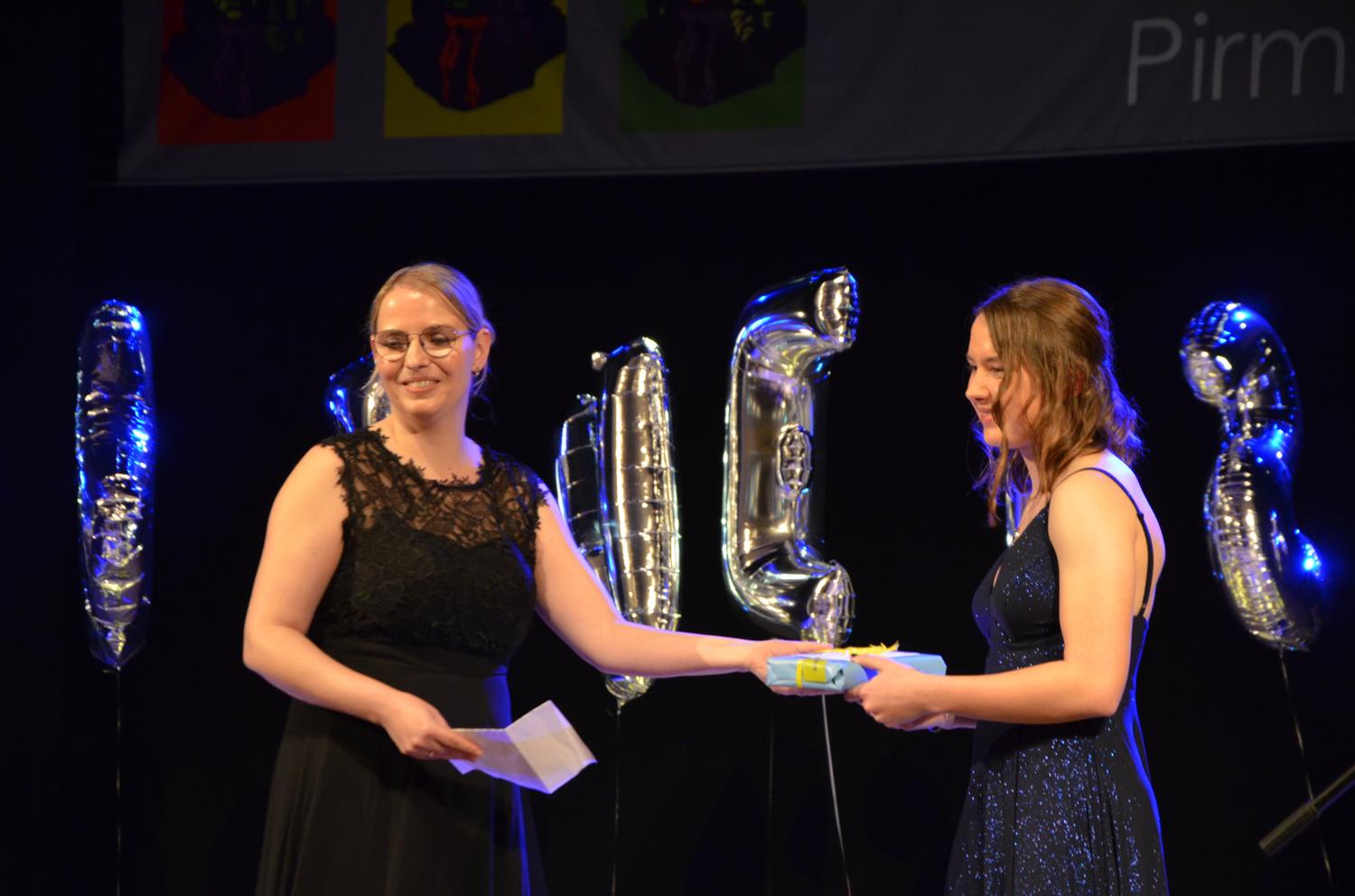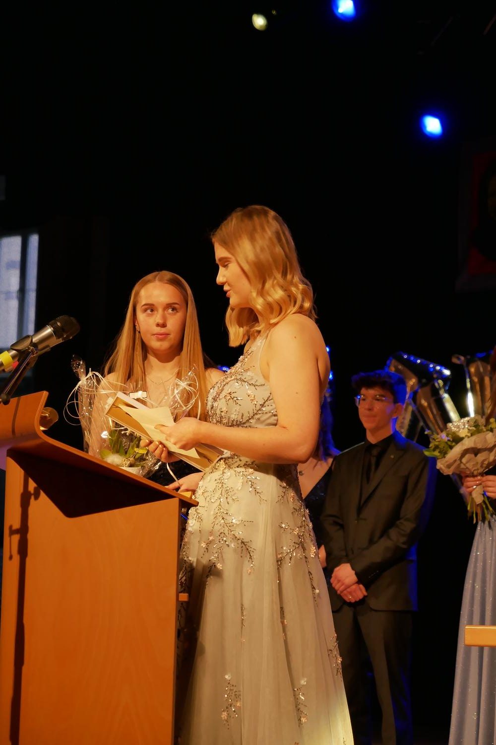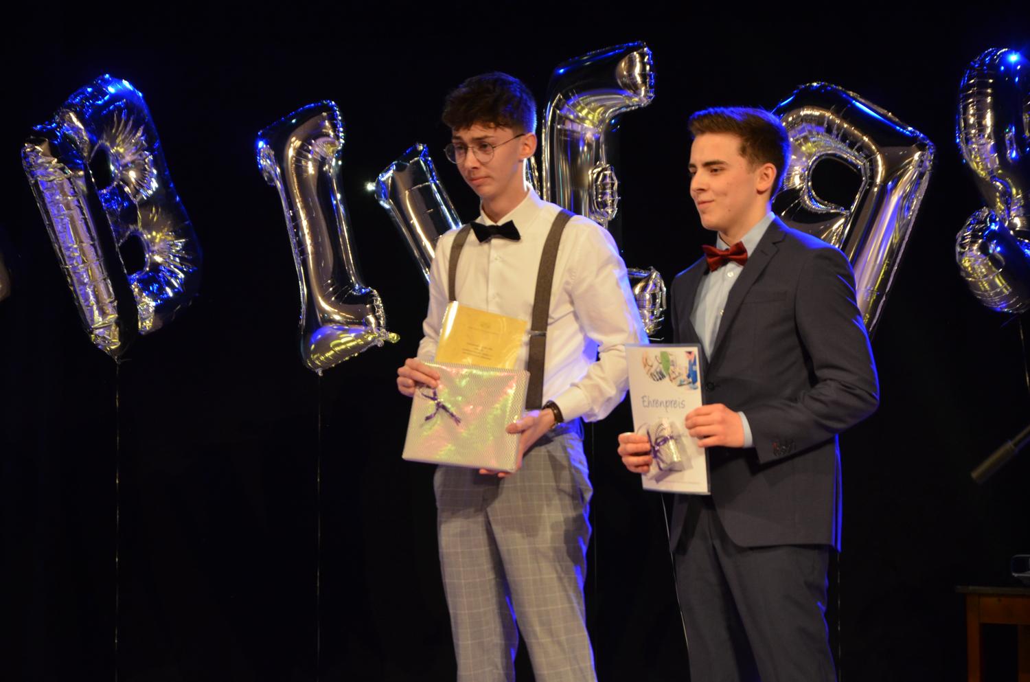 Neben der Vergabe der Abiturzeugnisse, welche sehnlichst erwartet wurden, sollten ebenfalls einzelne der ehemaligen Schülerinnen und Schüler für ihre besonderen Leistungen geehrt werden. Allen voran ist hier Leandra Weiß zu nennen. Insgesamt wurden 6 der 21 Preise an sie verliehen. Unter anderem auch der Slodkipreis für die beste Gesamtleistung in ihrem Jahrgang. Neben Leandra ist aber auch Stella Spies zu nennen, welche ebenfalls das Abitur mit Bestnote 1,0 bestanden hat und nur knapp die Wahl an Leandra abgeben musste.
