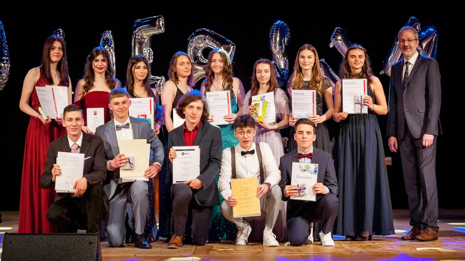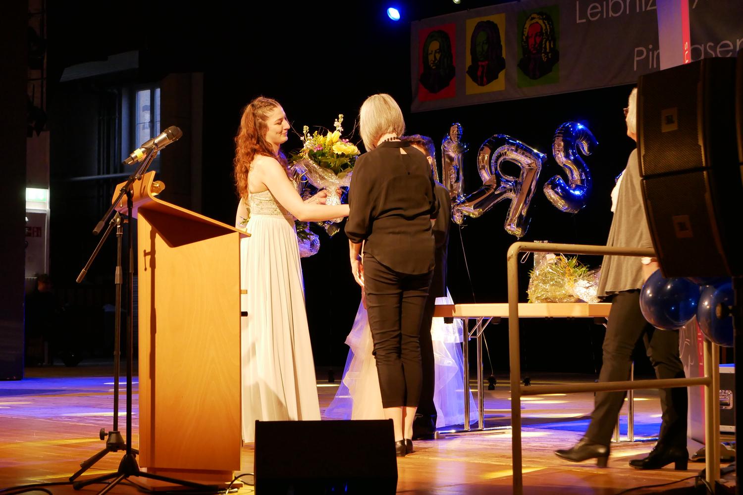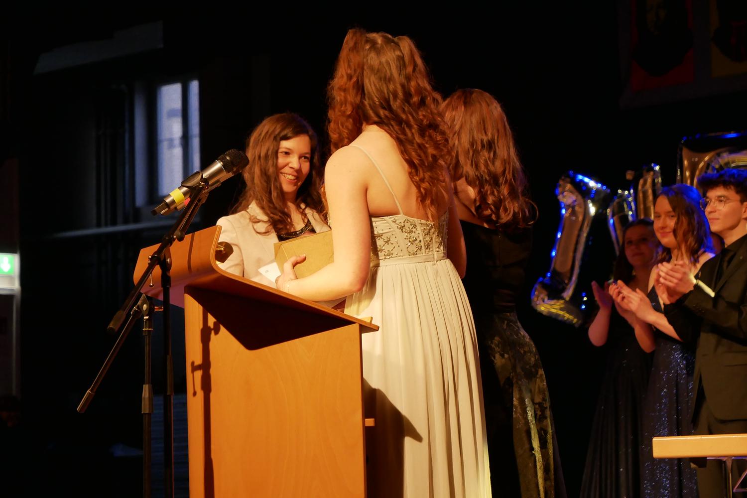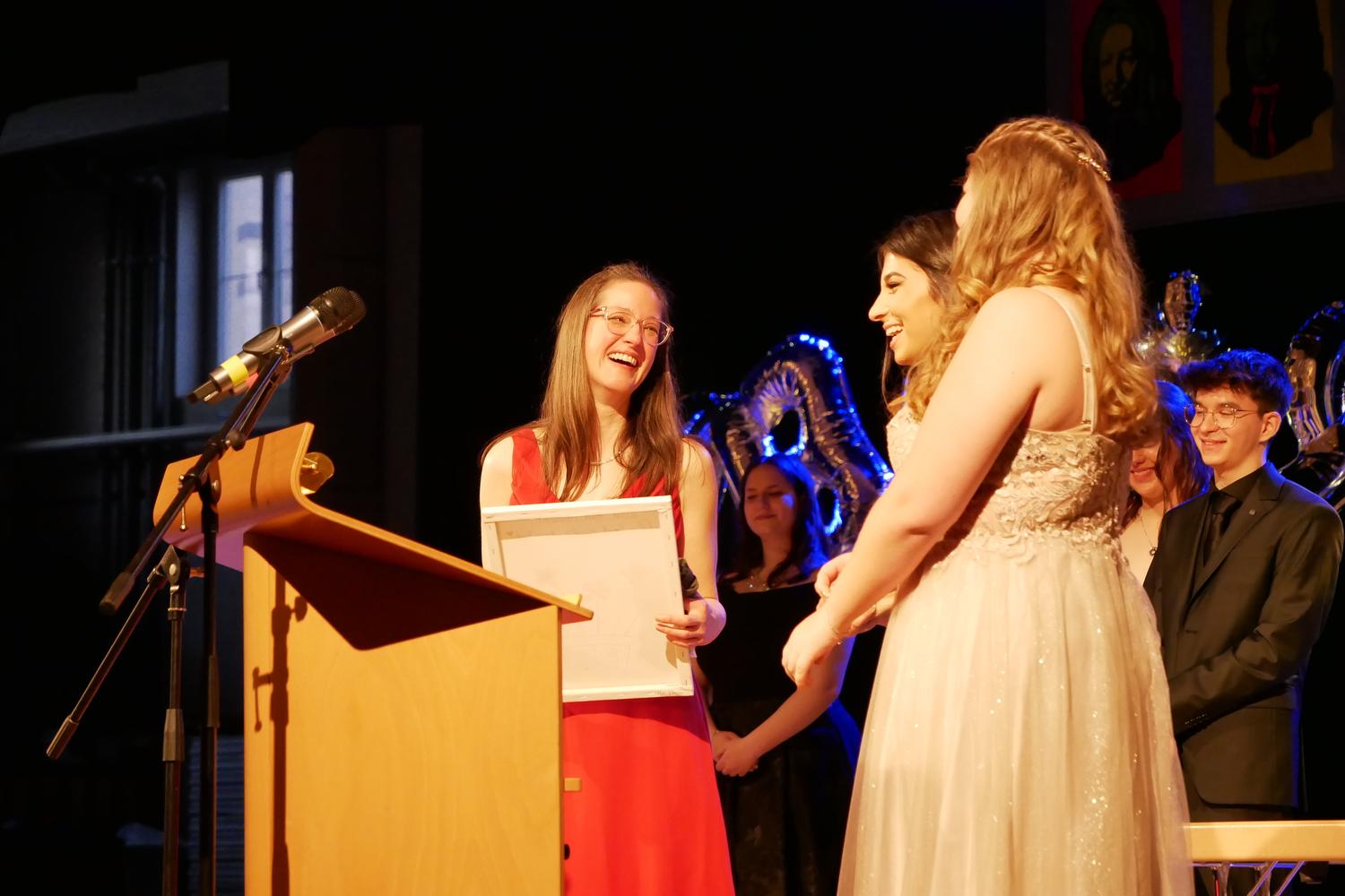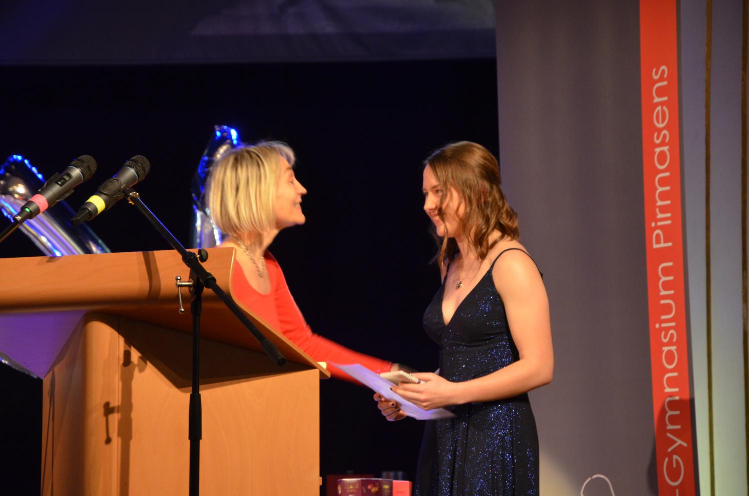 Neben der Vergabe der Abiturzeugnisse, welche sehnlichst erwartet wurden, sollten ebenfalls einzelne der ehemaligen Schülerinnen und Schüler für ihre besonderen Leistungen geehrt werden. Allen voran ist hier Leandra Weiß zu nennen. Insgesamt wurden 6 der 21 Preise an sie verliehen. Unter anderem auch der Slodkipreis für die beste Gesamtleistung in ihrem Jahrgang. Neben Leandra ist aber auch Stella Spies zu nennen, welche ebenfalls das Abitur mit Bestnote 1,0 bestanden hat und nur knapp die Wahl an Leandra abgeben musste.
