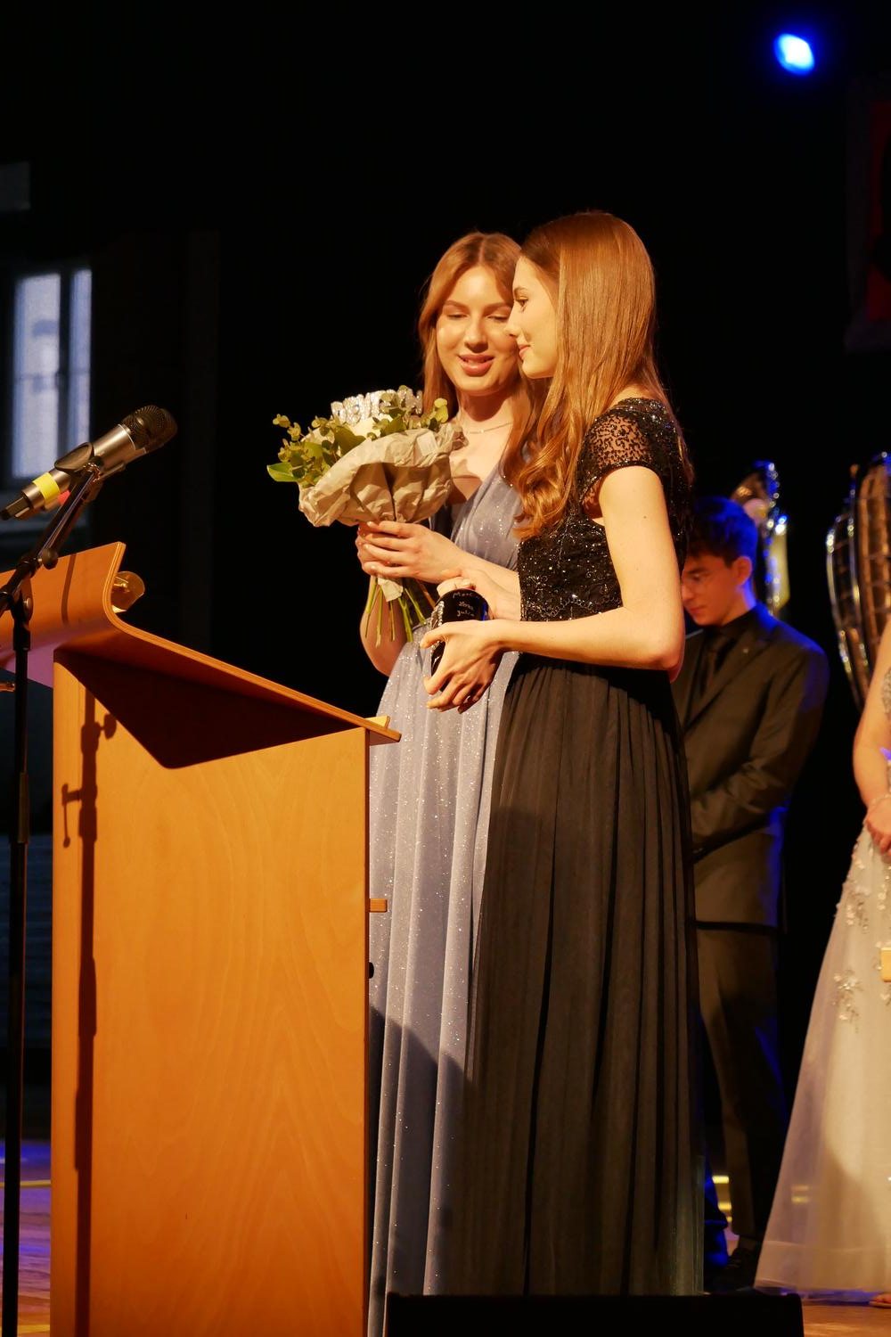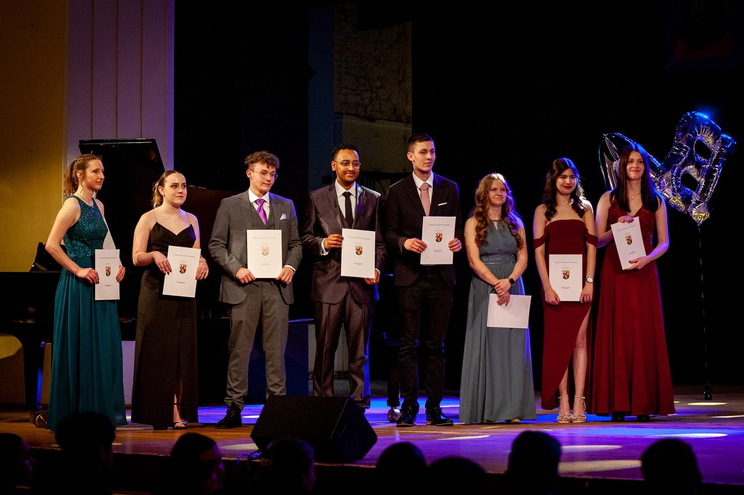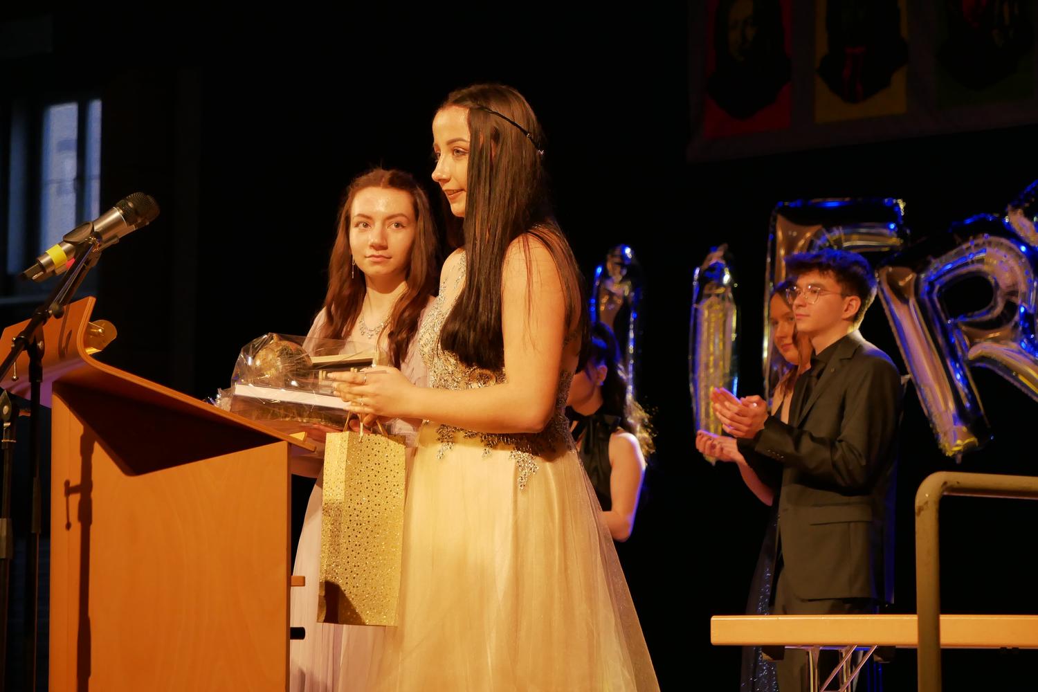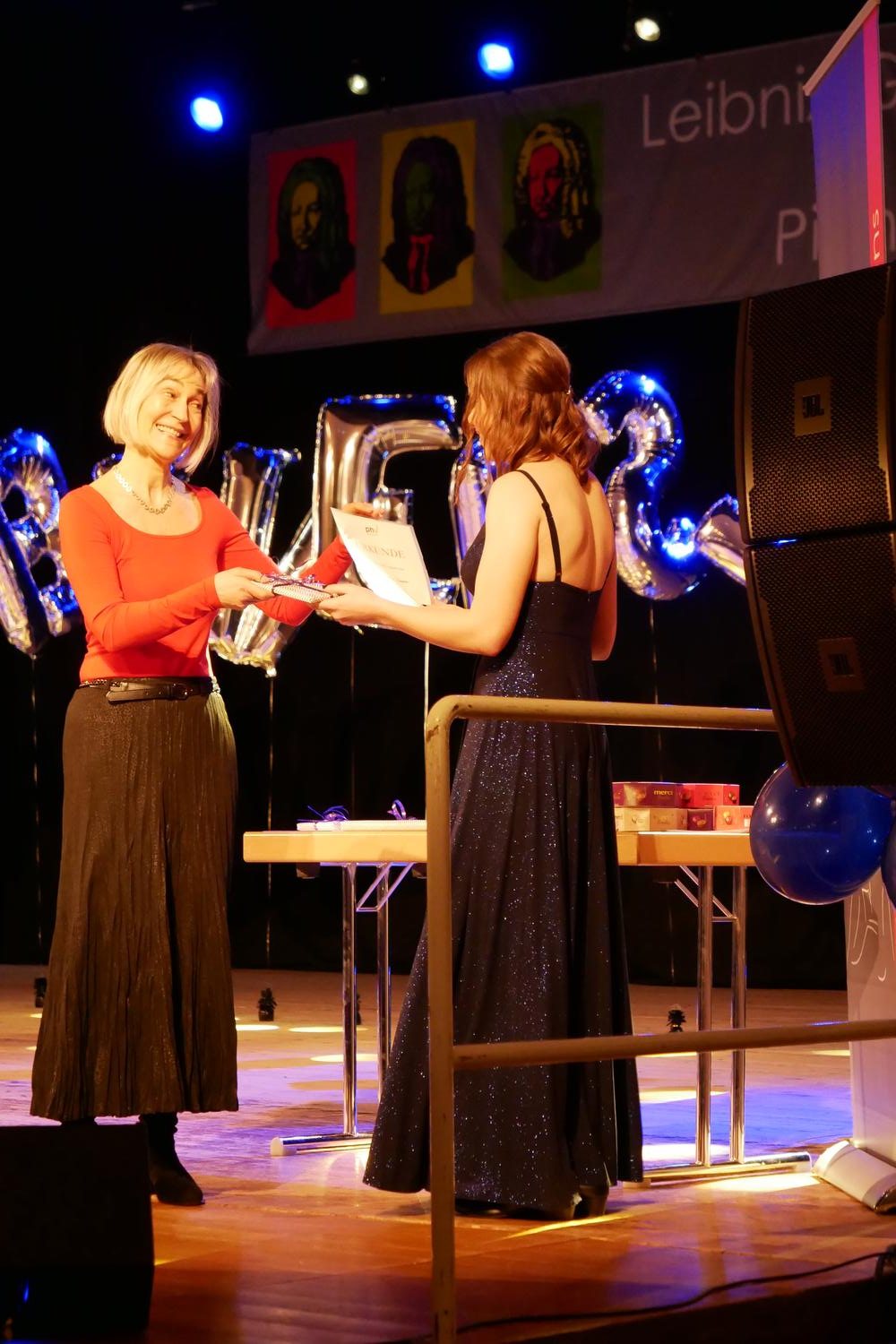Neben der Vergabe der Abiturzeugnisse, welche sehnlichst erwartet wurden, sollten ebenfalls einzelne der ehemaligen Schülerinnen und Schüler für ihre besonderen Leistungen geehrt werden. Allen voran ist hier Leandra Weiß zu nennen. Insgesamt wurden 6 der 21 Preise an sie verliehen. Unter anderem auch der Slodkipreis für die beste Gesamtleistung in ihrem Jahrgang. Neben Leandra ist aber auch Stella Spies zu nennen, welche ebenfalls das Abitur mit Bestnote 1,0 bestanden hat und nur knapp die Wahl an Leandra abgeben musste.