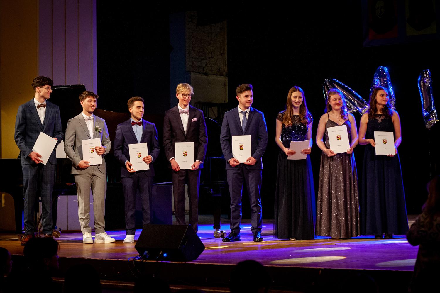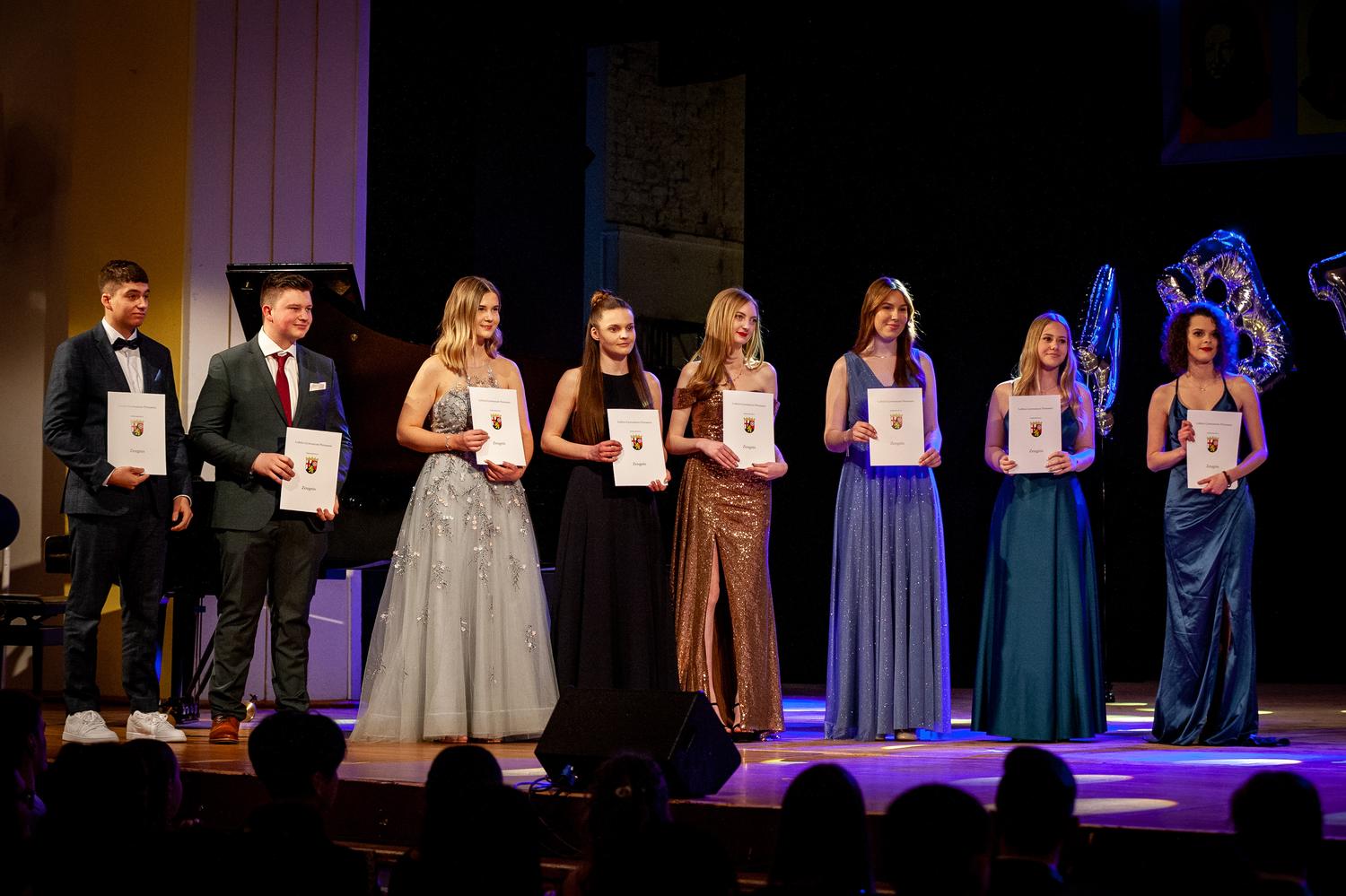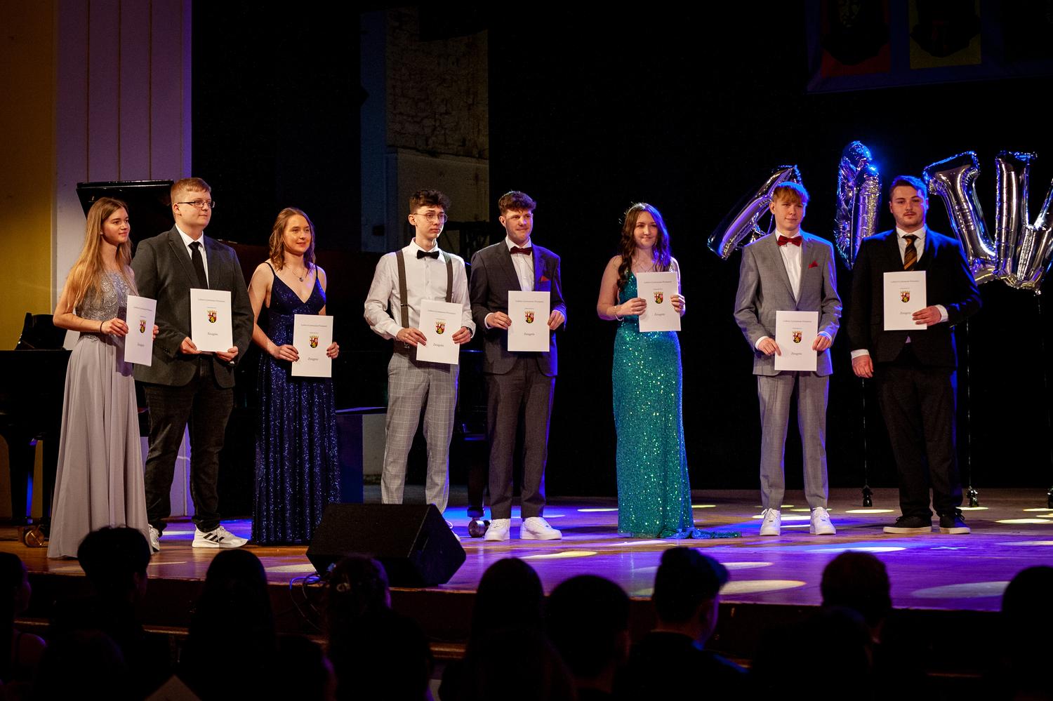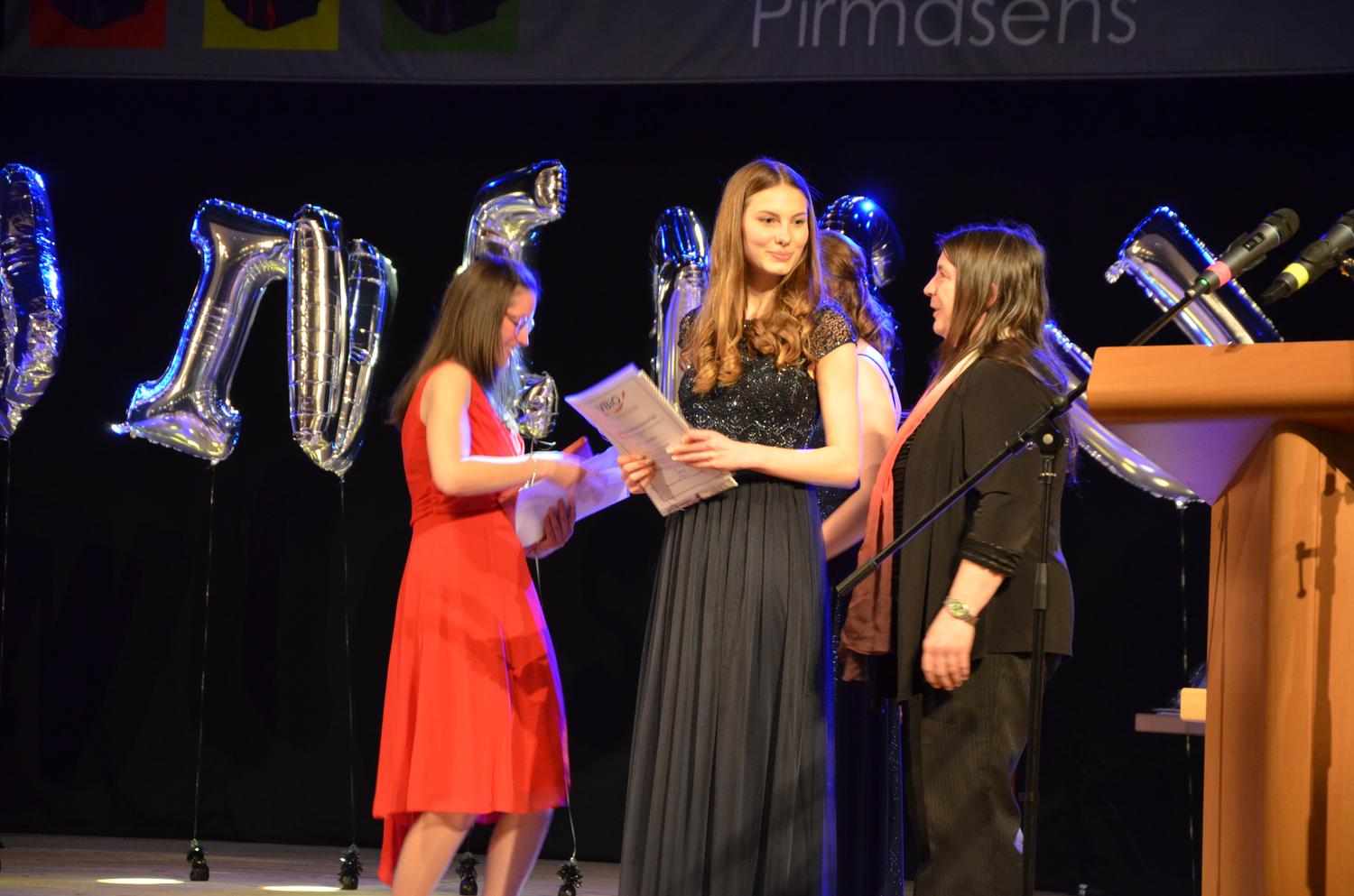Neben der Vergabe der Abiturzeugnisse, welche sehnlichst erwartet wurden, sollten ebenfalls einzelne der ehemaligen Schülerinnen und Schüler für ihre besonderen Leistungen geehrt werden. Allen voran ist hier Leandra Weiß zu nennen. Insgesamt wurden 6 der 21 Preise an sie verliehen. Unter anderem auch der Slodkipreis für die beste Gesamtleistung in ihrem Jahrgang. Neben Leandra ist aber auch Stella Spies zu nennen, welche ebenfalls das Abitur mit Bestnote 1,0 bestanden hat und nur knapp die Wahl an Leandra abgeben musste.
