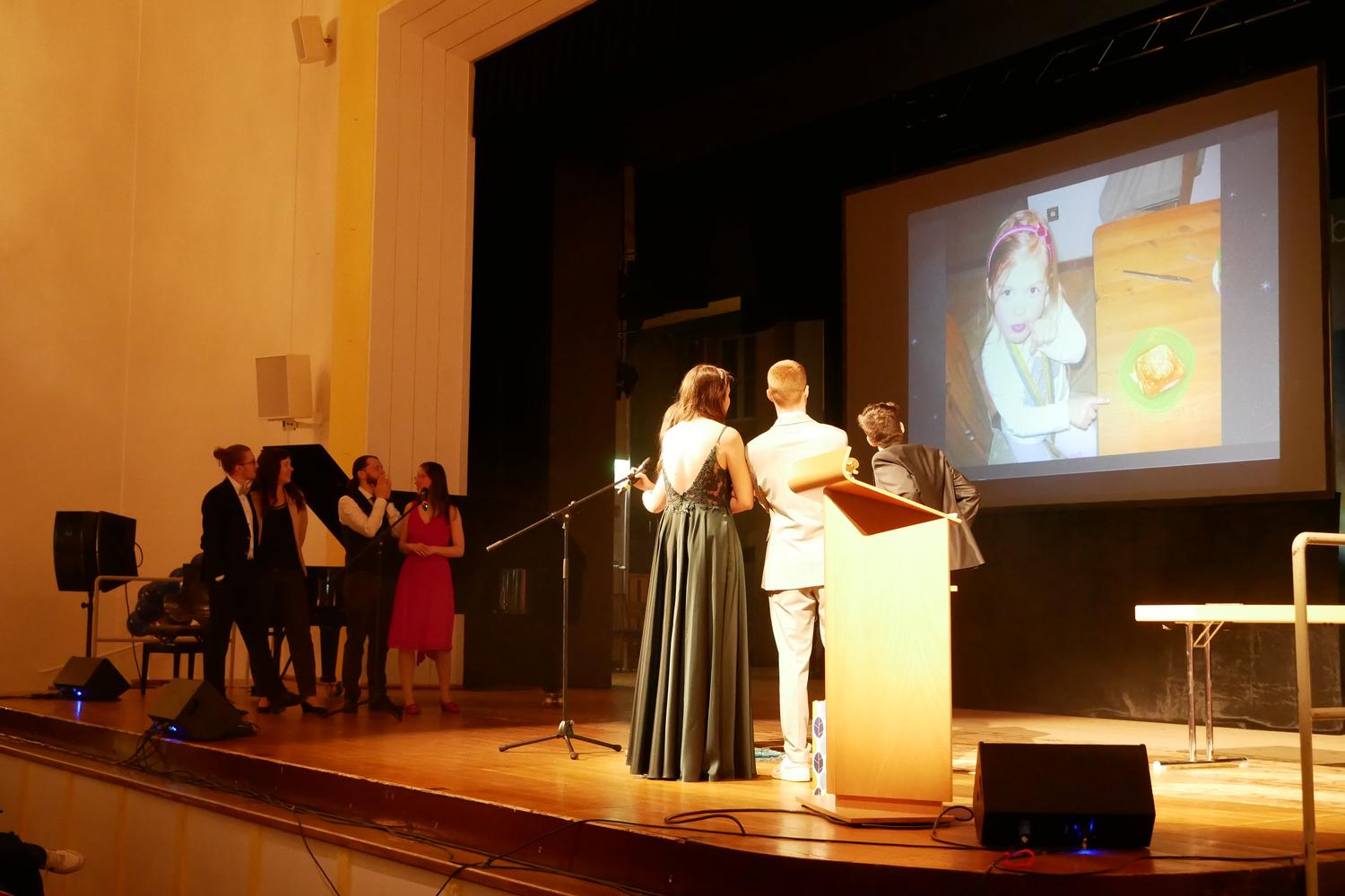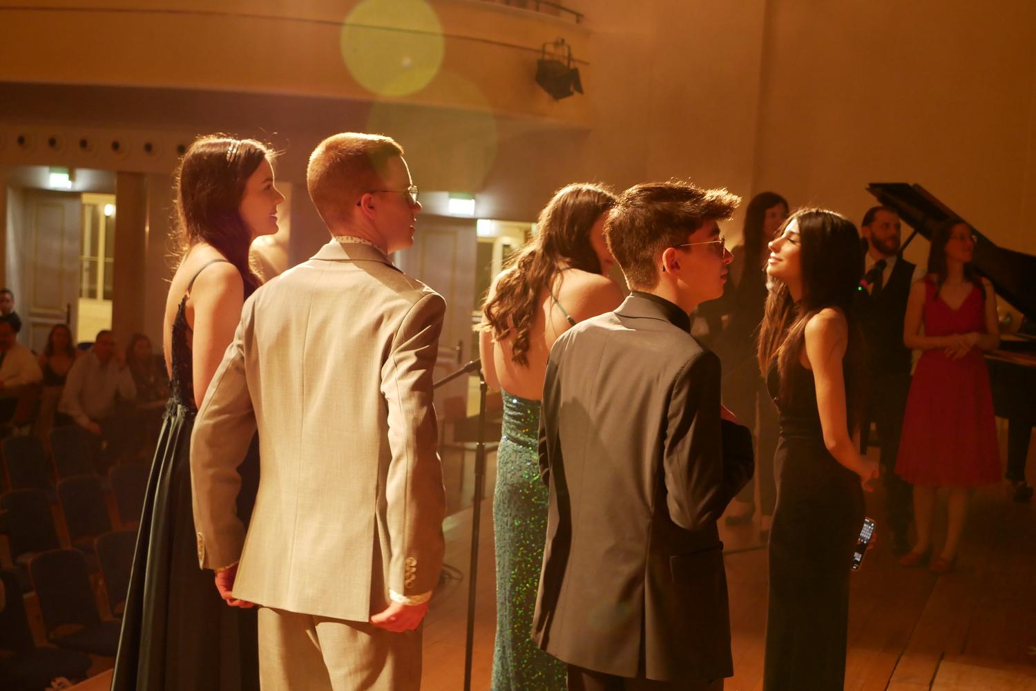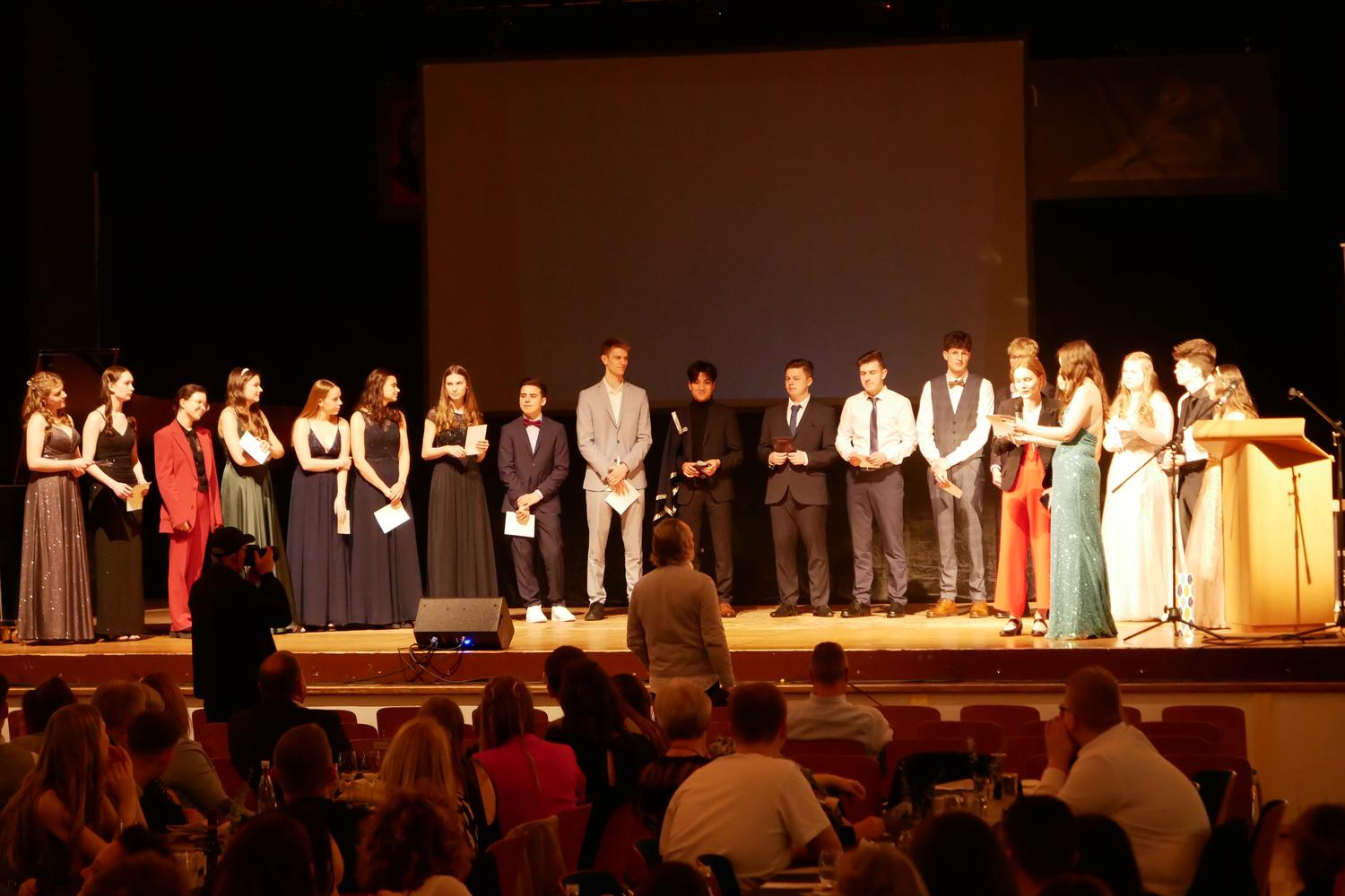 Traditionell übernahmen im Anschluss ein weiteres Mal die Abiturientinnen und Abiturienten die Bühne im „inoffiziellen Teil" des Abends. Kleine Wettspiele zwischen ihnen und ihren ehemaligen Lehrer:innen, einer eigene Preisverleihung sowie Tanzeinlagen rundeten den Abend ab. Das Tanzbein wurde hierbei nicht nur von den Absolvent:innen selbst geschwungen.