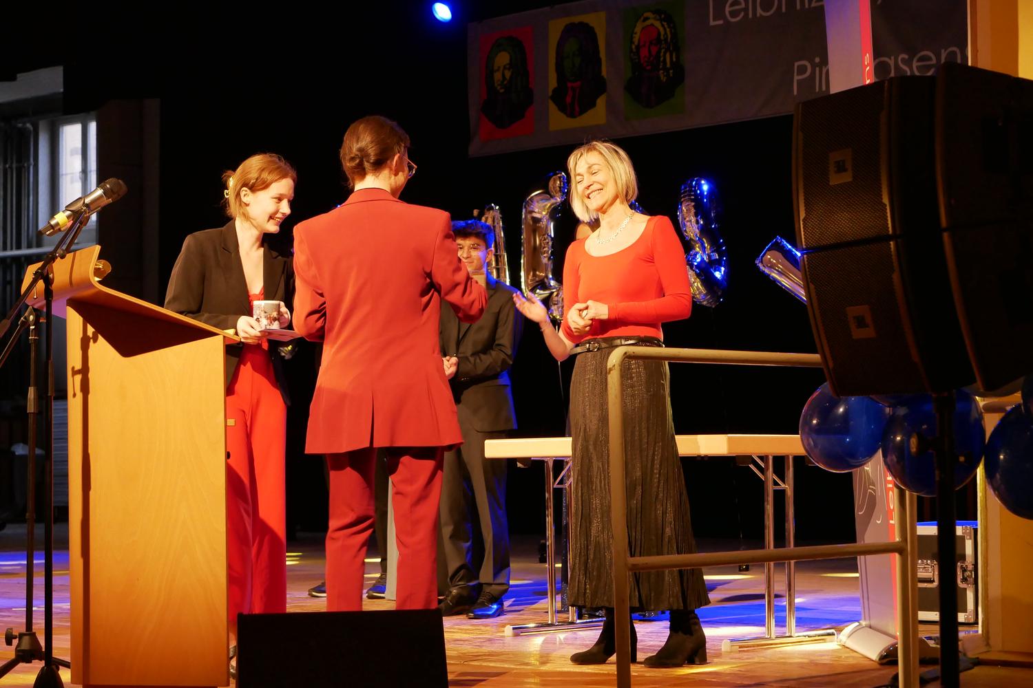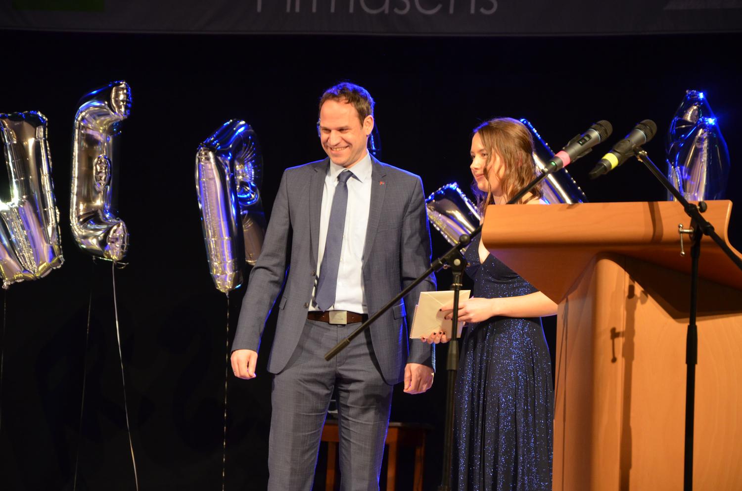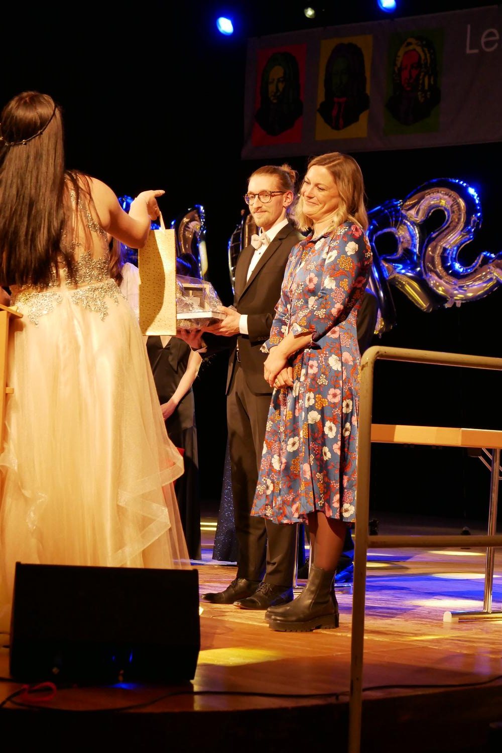 Traditionell übernahmen im Anschluss ein weiteres Mal die Abiturientinnen und Abiturienten die Bühne im „inoffiziellen Teil" des Abends. Kleine Wettspiele zwischen ihnen und ihren ehemaligen Lehrer:innen, einer eigene Preisverleihung sowie Tanzeinlagen rundeten den Abend ab. Das Tanzbein wurde hierbei nicht nur von den Absolvent:innen selbst geschwungen.