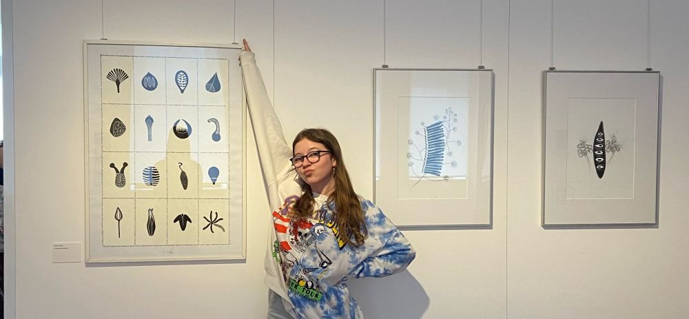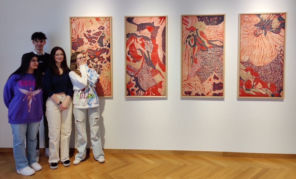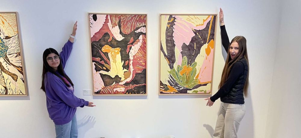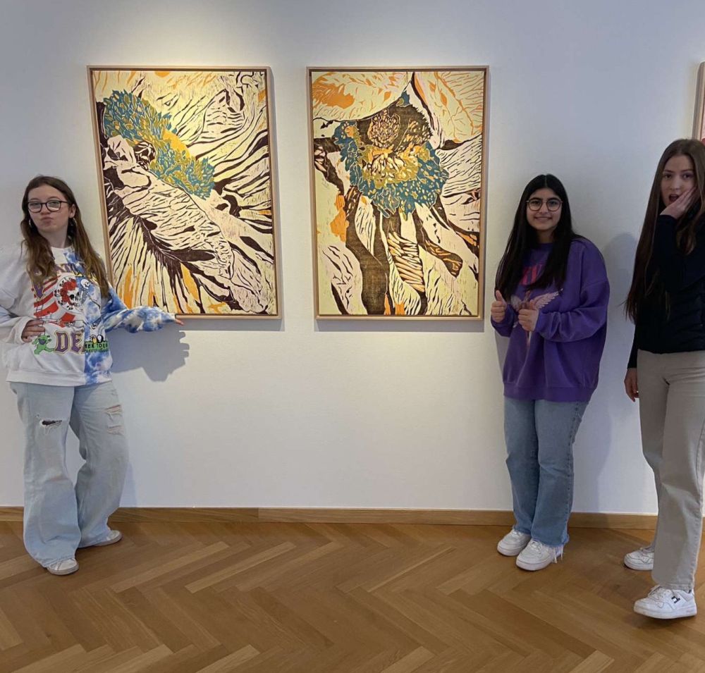 Die Klasse 10B hatte die Möglichkeit sich Linoldrucke, Holzschnitt, Siebdrucke und Blütenfragmente auf Schichten von Japanpapier von folgenden Künstlern/Künstlerinnen anzuschauen: