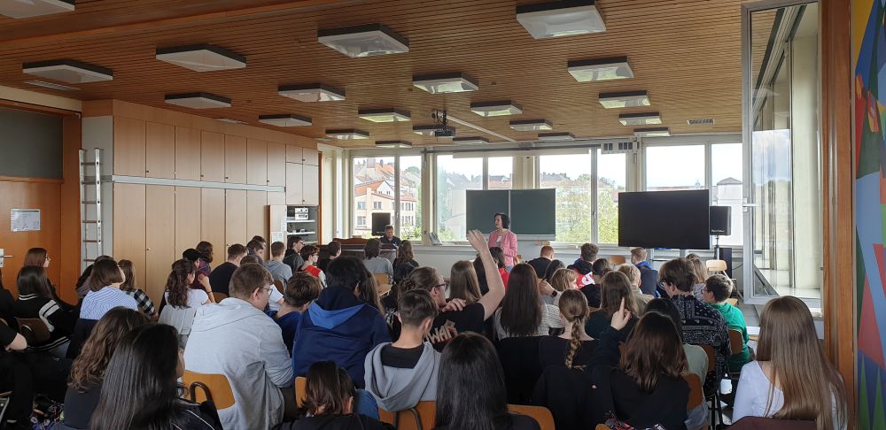Am 15. Mai 2022 bekam das Leibniz-Gymnasium Pirmasens Besuch von der Bundestagsabgeordneten Angelika Glöckner von der SPD. Sie ist in Pirmasens aufgewachsen, hat 1981 ihr Abitur am Hugo-Ball-Gymnasium gemacht und gehört seit 2014 zum deutschen Bundestag. Frau Glöckner stand hierbei den 10. Klassen in der 5. und 6. Unterrichtsstunde zur Beantwortung von Fragen und zum Teilen von Erfahrungen zur Verfügung.