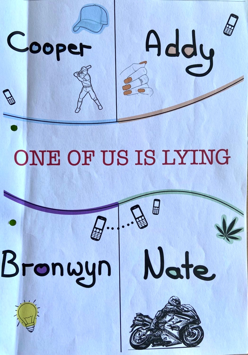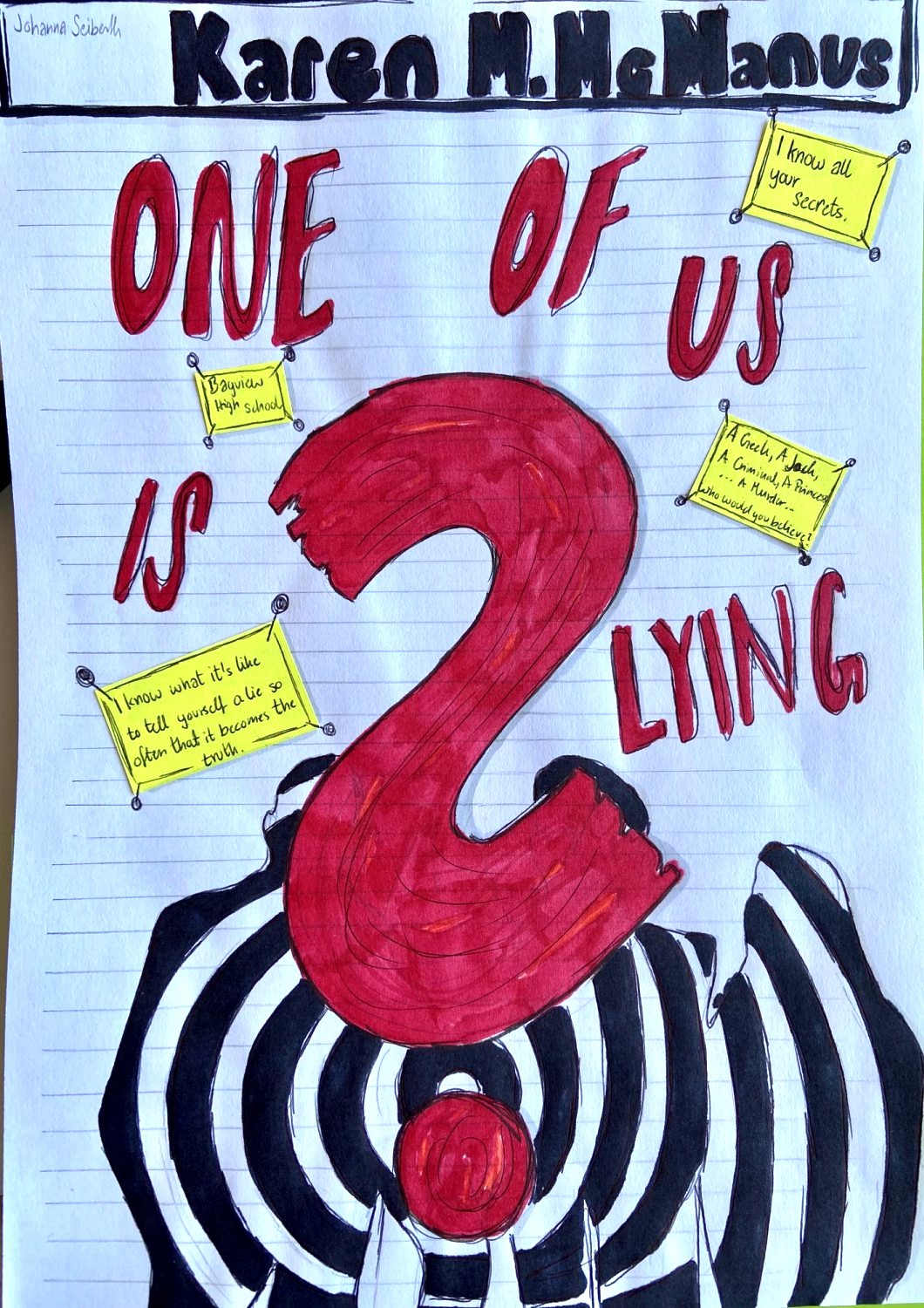 In unserem Deutschunterricht in der 9b haben wir gemeinsam den Jugendthriller „One of us is lying" von Karen M. McManus gelesen. Dabei geht es um fünf Schüler, welche nachsitzen müssen und als dabei ein Mitschüler stirbt, stellt sich die Frage, wer ist der Mörder und wer ist unschuldig?