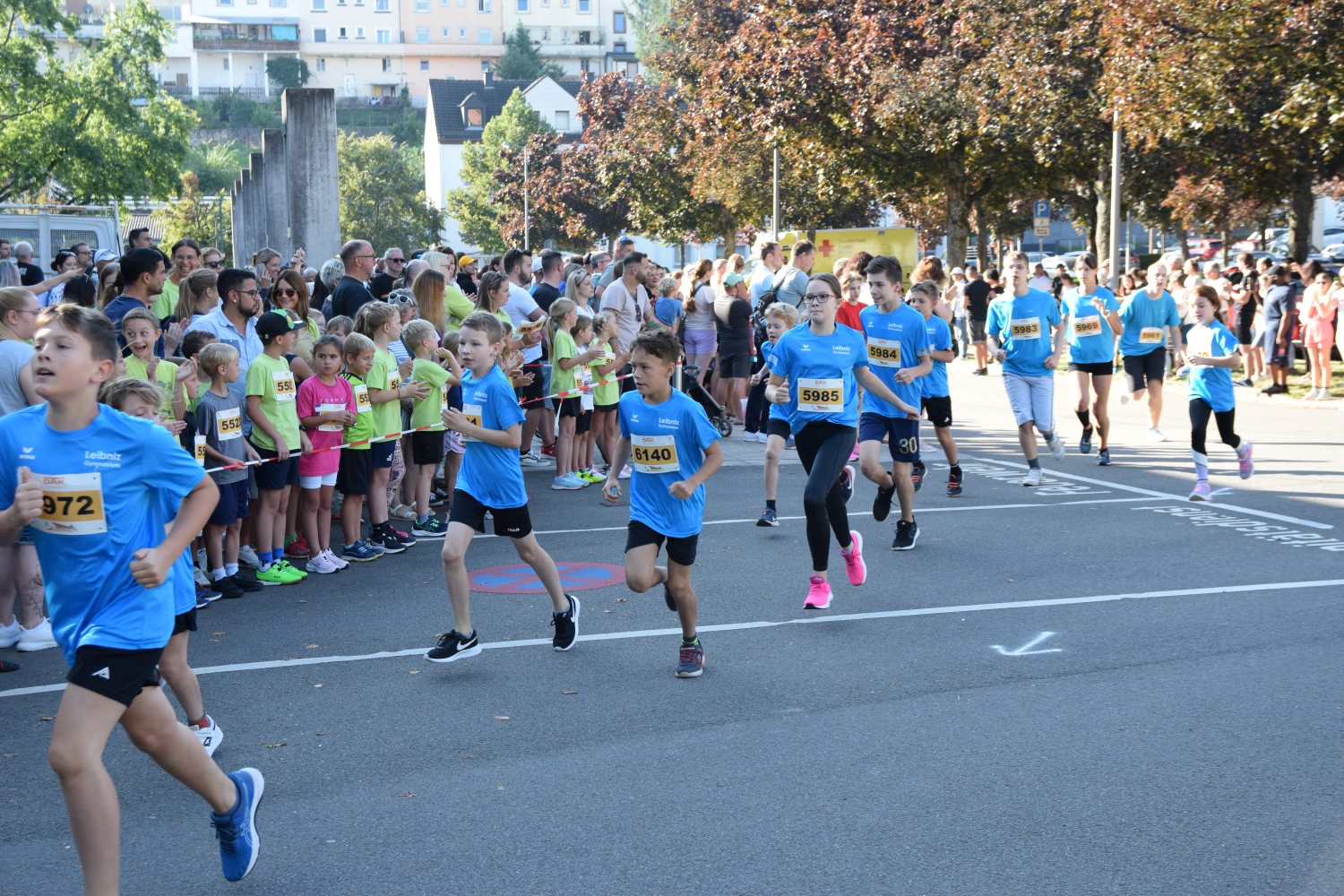 Wie jedes Jahr war das Leibniz wieder mit einer sehr großen Gruppe beim "Bambinilauf" des Pfälzerwaldmarathons vertreten. Bei bestem Lauf-Wetter trat eine hochmotivierte Truppe an und absolvierte die Laufstrecke mit tollen Laufzeiten. Wie im letzten Jahr starteten die Schülerinnen und Schüler im "Schulverband" - das Leibniz dieses Mal sogar als eigene Startergruppe.