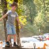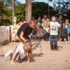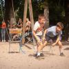 Fußballparkour, ein Wettrennen mit zugebundenen Beinen und ein Schokokusswettessen.