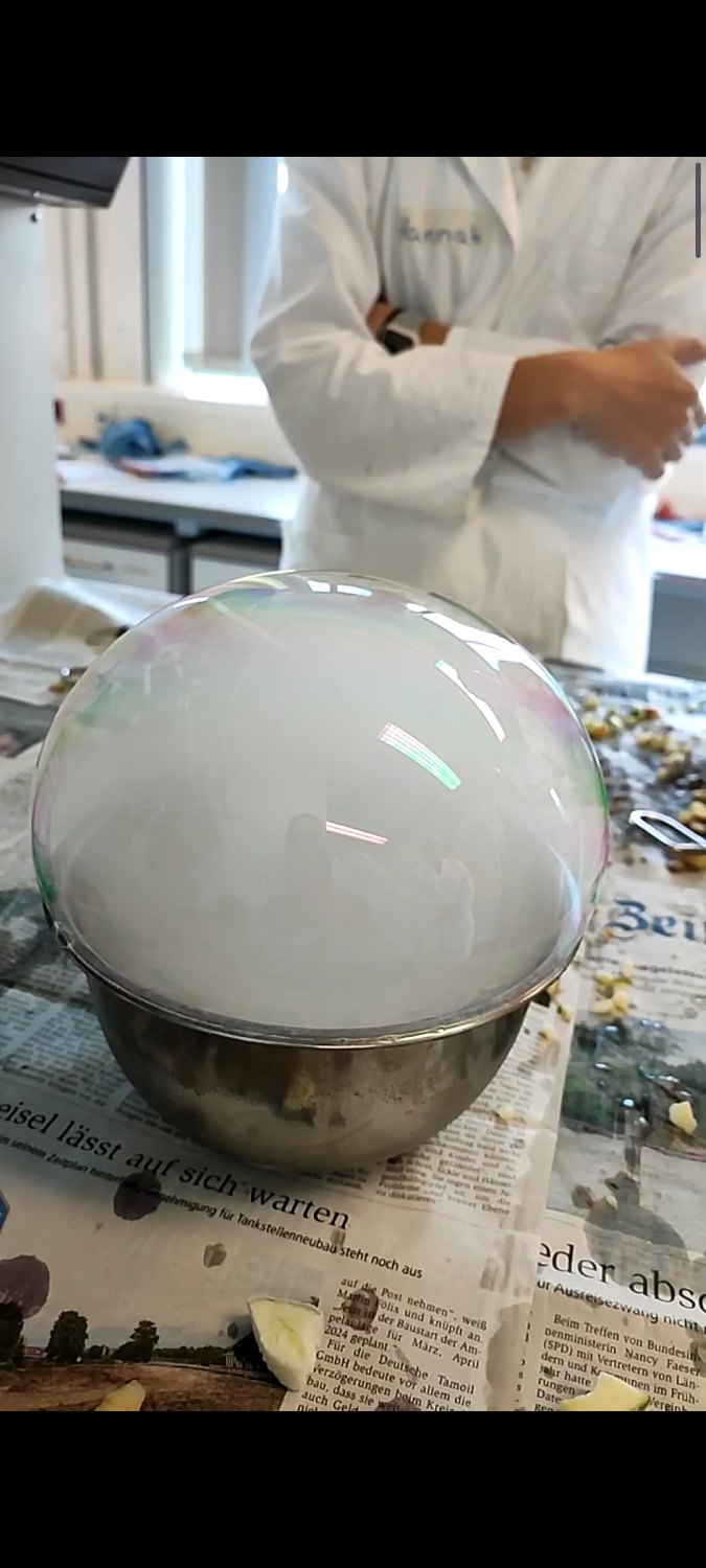 Am 10.09.23 war gegen Abend Ankunft am Jugendhaus Don Bosco. Von dieser Unterkunft aus, sind wir am folgenden Tag morgens zur Johannes Gutenberg-Universität gegangen und haben dort in einem, uns zur Verfügung gestellten Labor, verschiedene Experimente zum Thema „Farbstoffe und Pigmente" gemacht. In den Experimenten hatten wir Schüler und Schülerinnen Farbstoffe, in Form von Pulver, aus Pflanzen wie z.B. Rittersporn hergestellt. Ebenso stellten wir an diesem Tag unsere eigenen Wunderkerzen in unterschiedlichen Formen her. Diese beiden Experimente mussten mehrere Tage trocknen, weshalb wir sie erst am letzten Tag fertig bearbeiten, beziehungsweise ausprobieren konnten. Einen weiteren Versuch im Bereich Farben hatten wir beim Färben von weißen T-Shirts gemacht. Die Kleidung wurde mit dem blauen Farbstoff Indigo gefärbt. Anschließend hatten wir die fertigen Oberteile mit Essig und Wasser ausgewaschen und zum Trocknen im Labor aufgehängt.