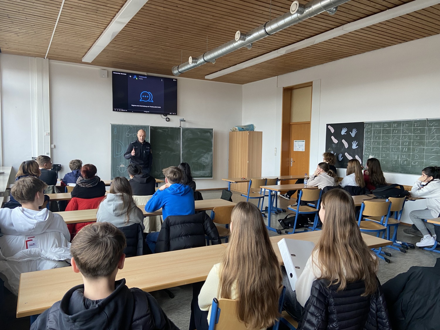 n den Stufen 9 und 10 bekamen wir Unterstützung von der Polizeiinspektion Pirmasens. Polizeihauptkommissar Andreas Mistler, Leiter des Sachgebiets Jugend, kam im Februar zu sechs Terminen in die Schule um in allen 9. und 10. Klassen über die Themen „Cybermobbing", „Grooming" und „Sexting" zu informieren. Dabei ging es vor allem präventiv um Jugend(medien)schutz und rechtliche Fragen. Hier gab es für die Schülerinnen und Schüler auch die Gelegenheit, Fragen zu stellen und Einblick in den Polizei-Alltag und reale Fälle zu bekommen.