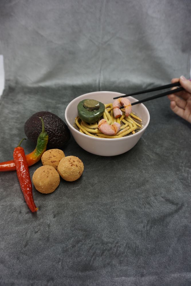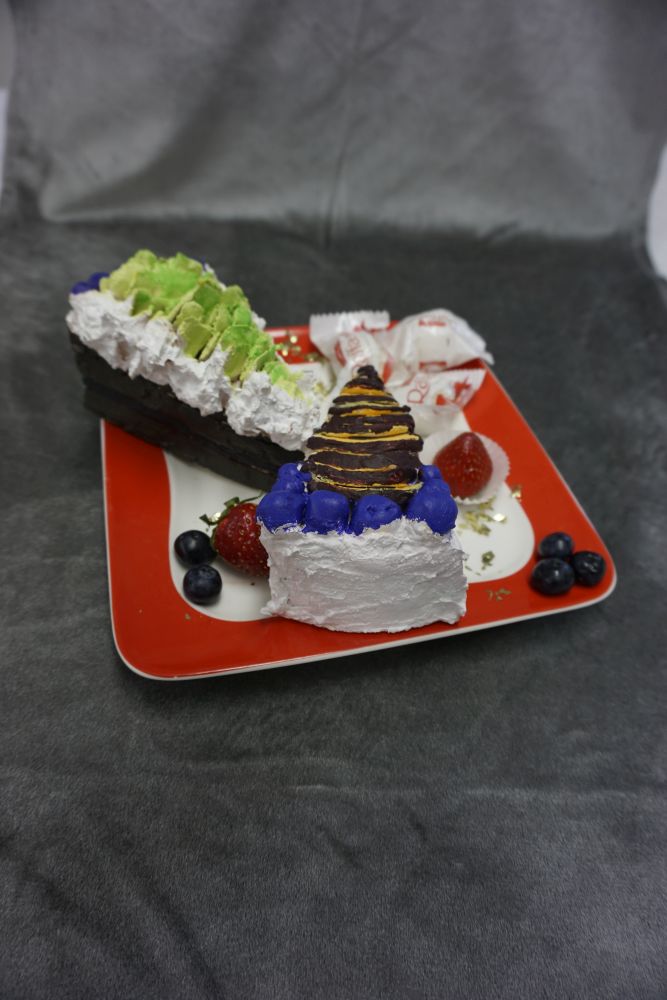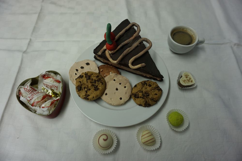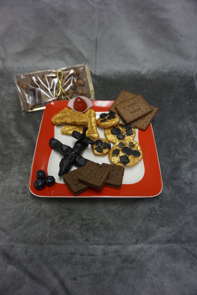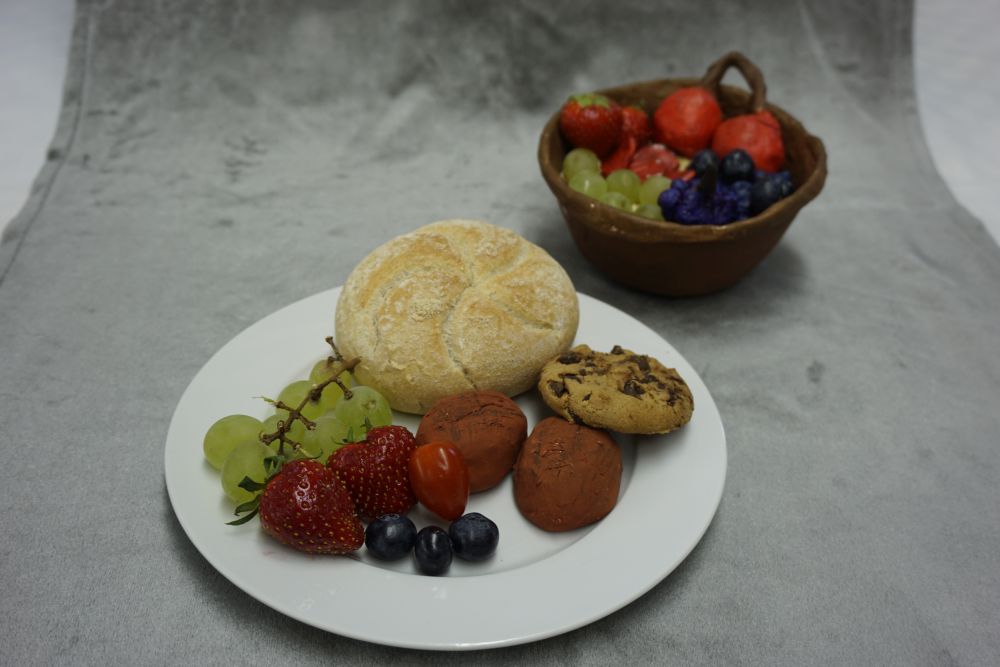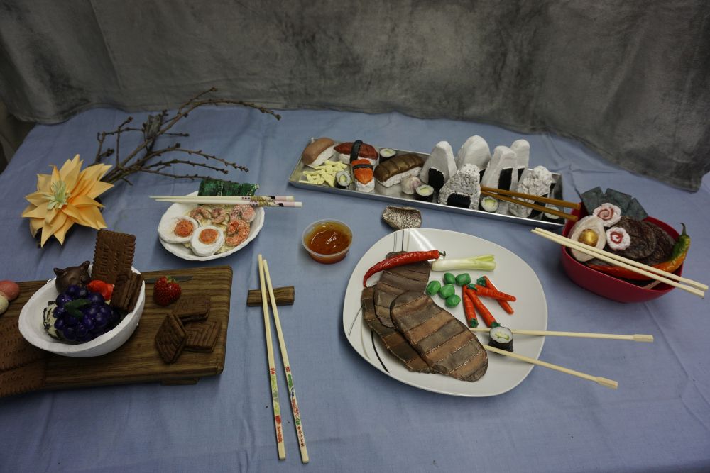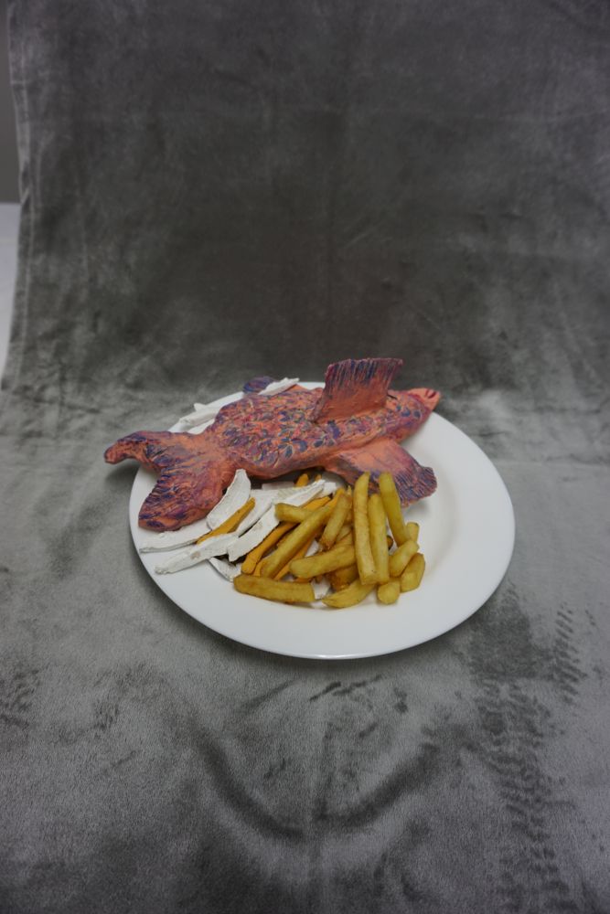 Um den Tonspeisen den End Look zu geben, bemalten sie die Klasse mit Acryl- und Wasserfarben. Frau Weilbach-Pieters schlug der Klasse vor, richtiges Essen mit in die Schule zu bringen und es zu den Werken zu legen. Also positionierte die Klasse zum Beispiel Pommes oder auch Kekse zu ihren Menüs. Als Abschluss haben sie noch ein Food Festival für alle Sinne gefeiert.
