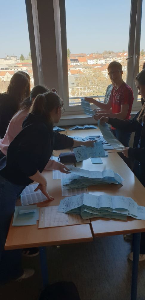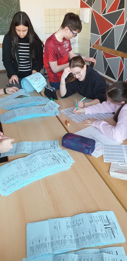 Das Wahllokal und die abschließende Stimmauszählung wurden vorbildlich durch einen offiziellen Wahlvorstand aus der Klasse 9A betreut. Nochmals vielen Dank für dieses Engagement!